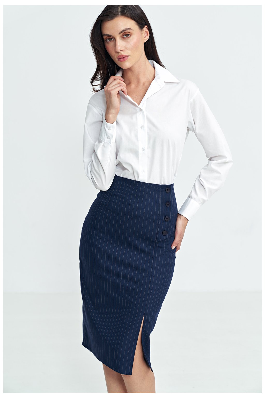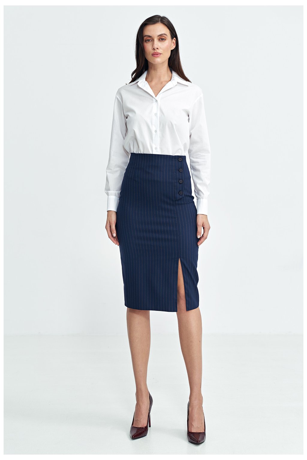 Tato sukně je kombinací klasiky a moderny. Vyrobena z materiálu vysoké kvality v jemně kontrastních proužcích typu tenis, skvěle zdůrazňuje postavu. Vysoký pas opticky prodlužuje nohy, délka nad koleno dodává eleganci. Knoflíky na ozdobném boku dodávají charakter a rozpark na přední straně zajistí volnost pohybu. Ideální jak do práce, tak na speciální příležitosti. Tato sukně je investicí do vašeho šatníku. Její univerzální střih a originální vzor vám zajistí sebedůvěru a atraktivitu. Je to kousek, který by měl být ve skříni každé ženy, která si cení elegance a pohodlí.