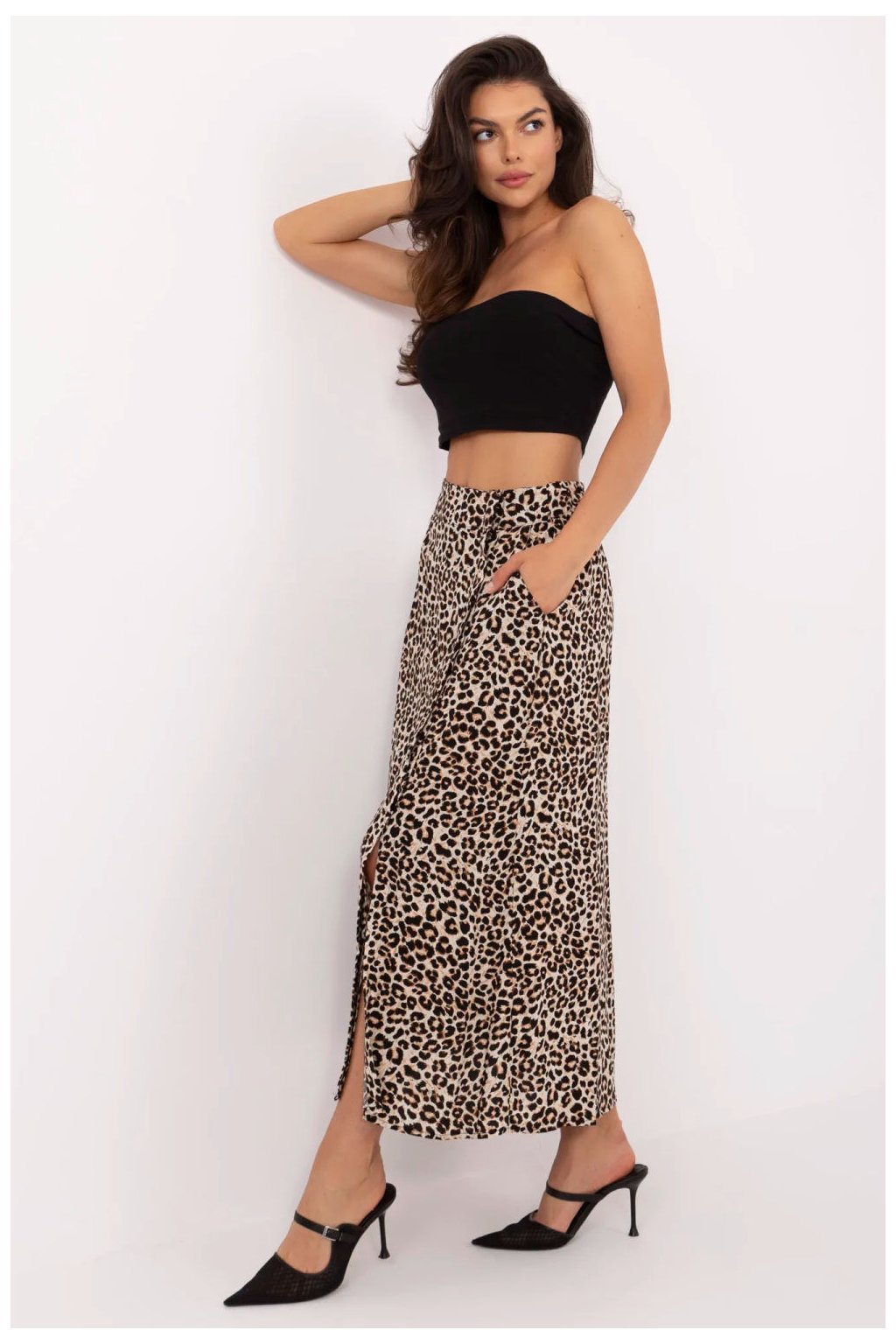 Elegantní a zároveň pohodlná dámská sukně midi délky je skvělou volbou na každý den i do práce. V casual stylu se skvěle hodí jak do kanceláře, tak i na každodenní vycházky. Vyrobena z převažující viskózy, příjemné kůži a prodyšné látky, zaručuje pohodlí po celý den. Model má praktické kapsy a zapínání na knoflíky s listem, co dodává eleganci a uklizený vzhled. Další výhodou je, že sukně patří do kolekce ekologického oblečení, ideální pro ty, kteří dbají na životní prostředí a volí uvědomělou módu. Jedná se o nadčasový střih, který snadno sladíte s různými stylizacemi, od klasických košil až po volné trička.