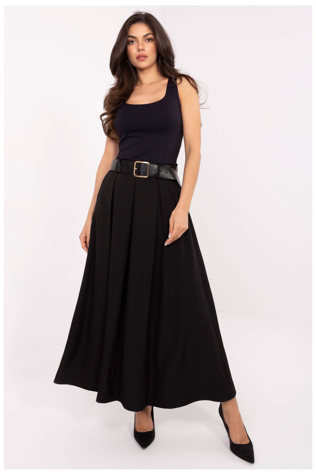 Elegantní a ženská dlouhá rozkročená maxi sukně s kontrafaldami vpředu spojující pohodlí nošení s klasickým stylem vhodným jak do práce, tak na každodenní vycházky. Vyrobená z vysoké kvality směsi viskózy a polyesteru, je lehká, vzdušná a krásně padne na postavu. Model má vsazený gumový pas vzadu, který zajistí ideální přizpůsobení v pasu, a zapínací pásek, který jemně zdůrazní postavu. Boční kapsy přidávají funkcionalitu a kontrafaldy vpředu dodávají sukně elegantní rozkročený tvar. Sukně má hladký vzor, chybí klasické zapínání a má maxi délku, díky čemuž je univerzální a snadno se kombinuje. Je to ideální volba na každodenní, návštěvní a elegantní příležitosti, spojující pohodlí s nadčasovým střihem.