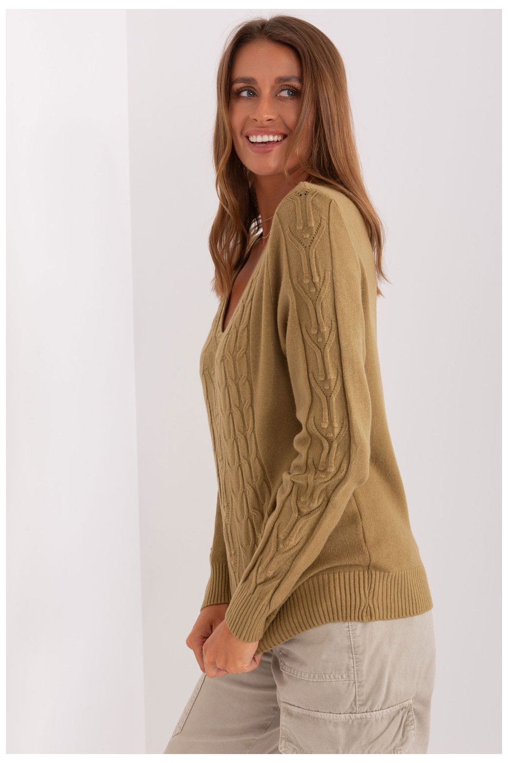 Tento dámský svetr je ideální volbou pro neformální každodenní příležitosti. Je vyroben z bavlny příjemné na dotek a zaručuje pohodlí a volnost pohybu. Svetr má standardní délku, která se hodí k mnoha stylům. Dlouhé rukávy a výstřih do V mu dodávají na eleganci a jsou vhodné pro různá roční období. Jednou z hlavních předností tohoto svetru je pestrá struktura látky, která mu dodává jedinečný charakter. Dominantní vzor, například jemné zdobení, mu navíc dodávají módní vzhled. Tento svetr se dobře kombinuje jak s džínami, tak se sukněmi a legínami, což vám umožní vytvářet různé looky. Ať už se chystáte na procházku, do práce nebo na setkání s přáteli, tento svetr dodá vašemu stylingu pohodlí a šarm.
