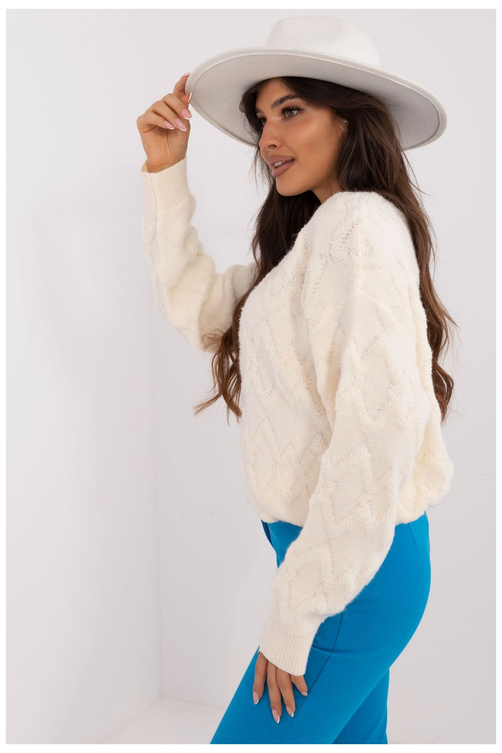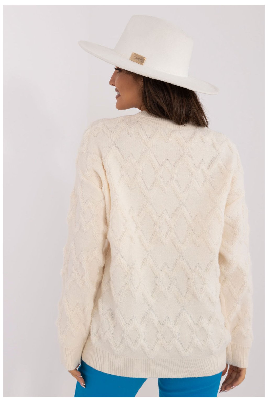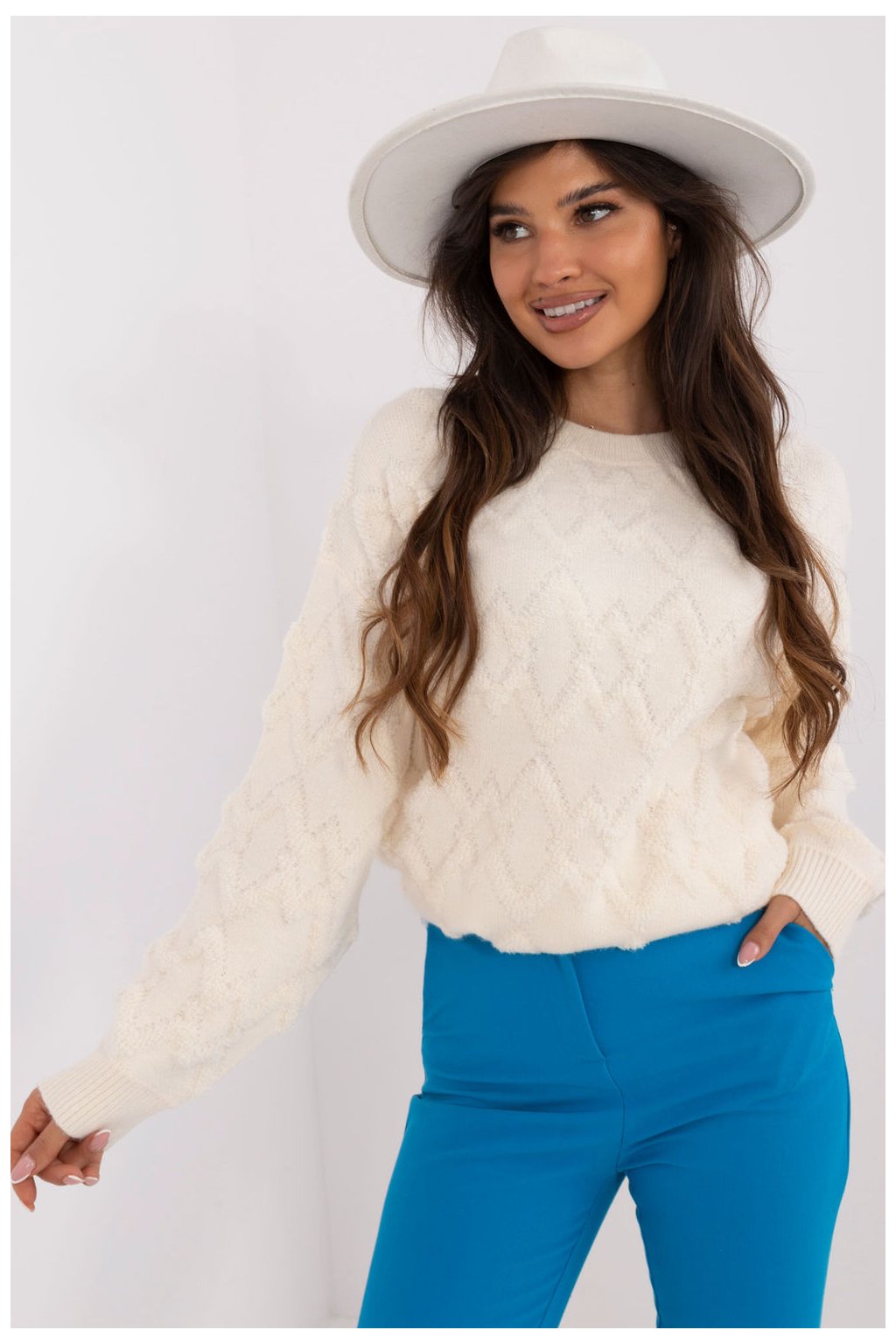 Dámský svetr v casual stylu, ideální na každodenní příležitosti. Vyznačuje se různorodou fakturou pletení, která mu dodává jemnou eleganci. Svetr má standardní délku a dlouhé rukávy, což zajišťuje pohodlné nošení po celý den. Kulatý výstřih zdůrazňuje klasický charakter modelu, který se skvěle hodí jak do práce, tak na běžné nošení.
