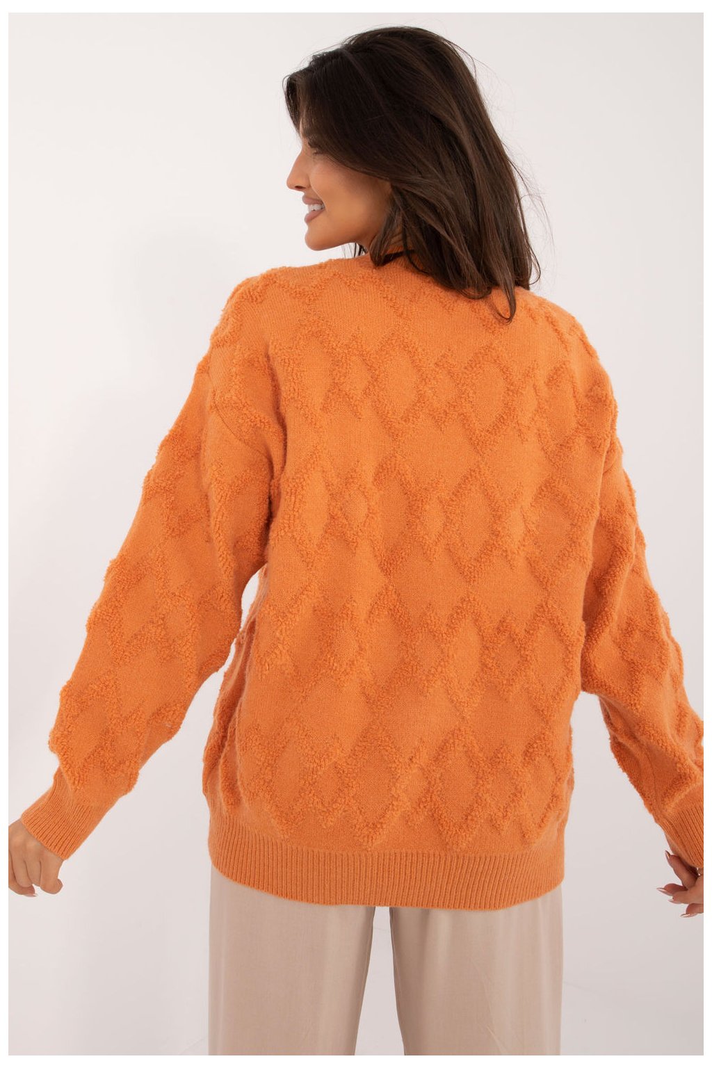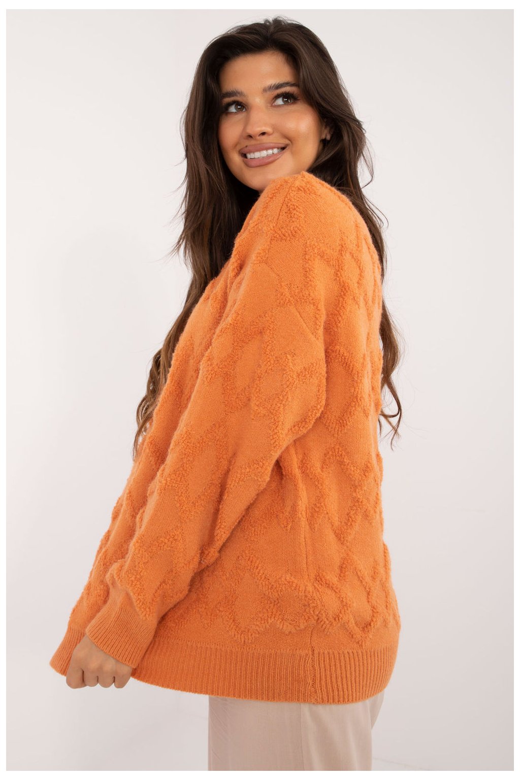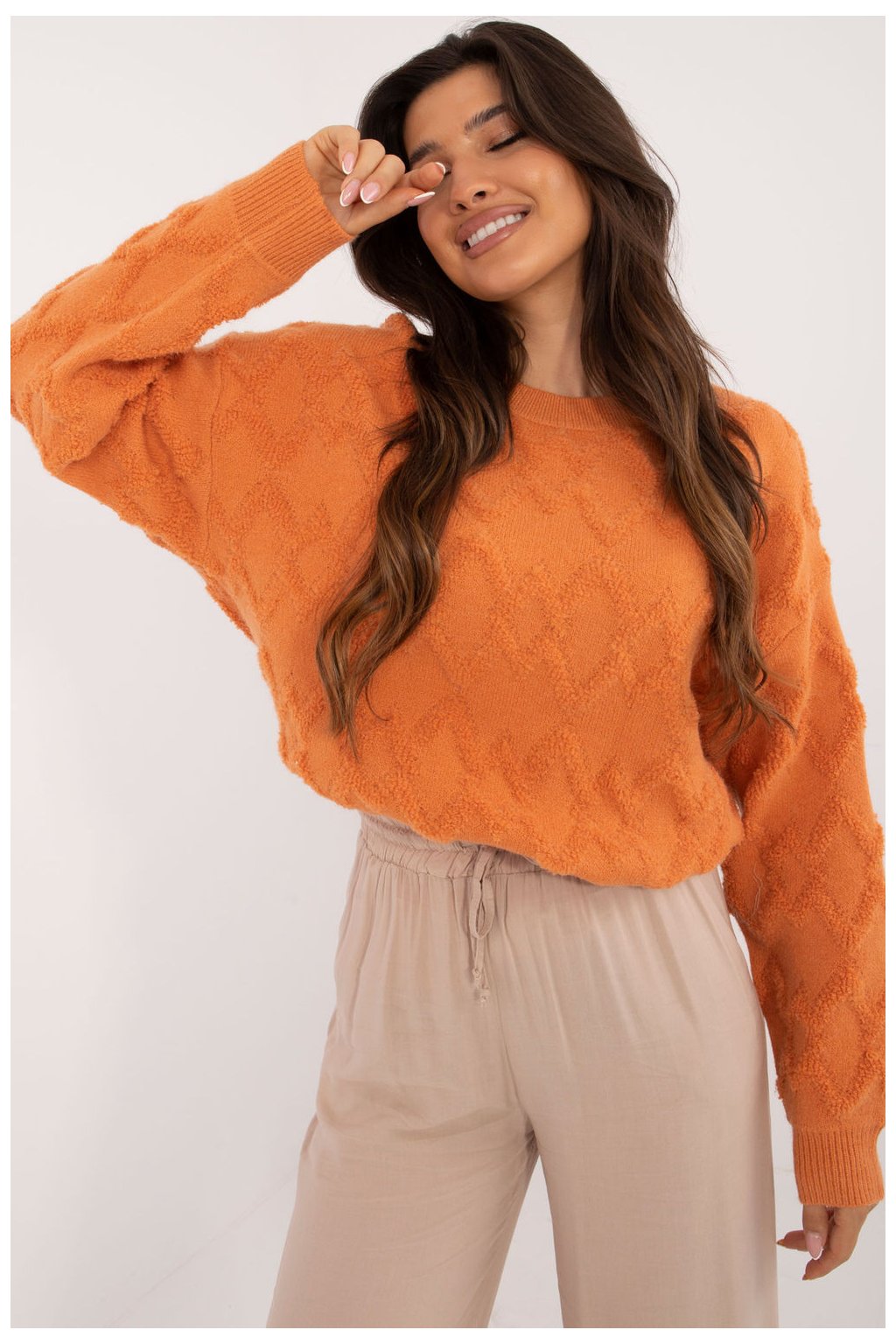Dámský svetr v casual stylu, ideální pro každodenní příležitosti. Vyznačuje se různorodou texturou pleteniny, která mu dodává jemnou eleganci. Svetr má standardní délku a dlouhé rukávy, zajišťující pohodlí nošení po celý den. Kulatý výstřih zdůrazňuje klasický charakter modelu, který se skvěle hodí jak do práce, tak i na běžné nošení.