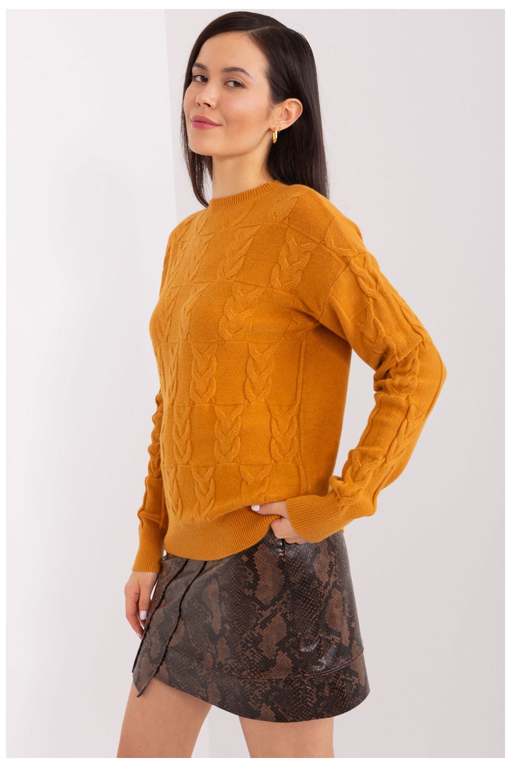 Dámský svetr s hlavou je skvělou volbou na každý den. Klasický kulatý výstřih a dlouhé rukávy zajistí pohodlí a univerzální styl. Model se vyznačuje dominantním vzorem a různorodou texturou materiálu, co mu dodává zvláštní charakter. Vyrobený z vysoké kvality směsi viskózy, nylonu a PBT je měkký, pružný a příjemný na dotek. Ideální pro každodenní stylizace, skvěle se hodí jak k džínám, tak k elegantním kalhotám.