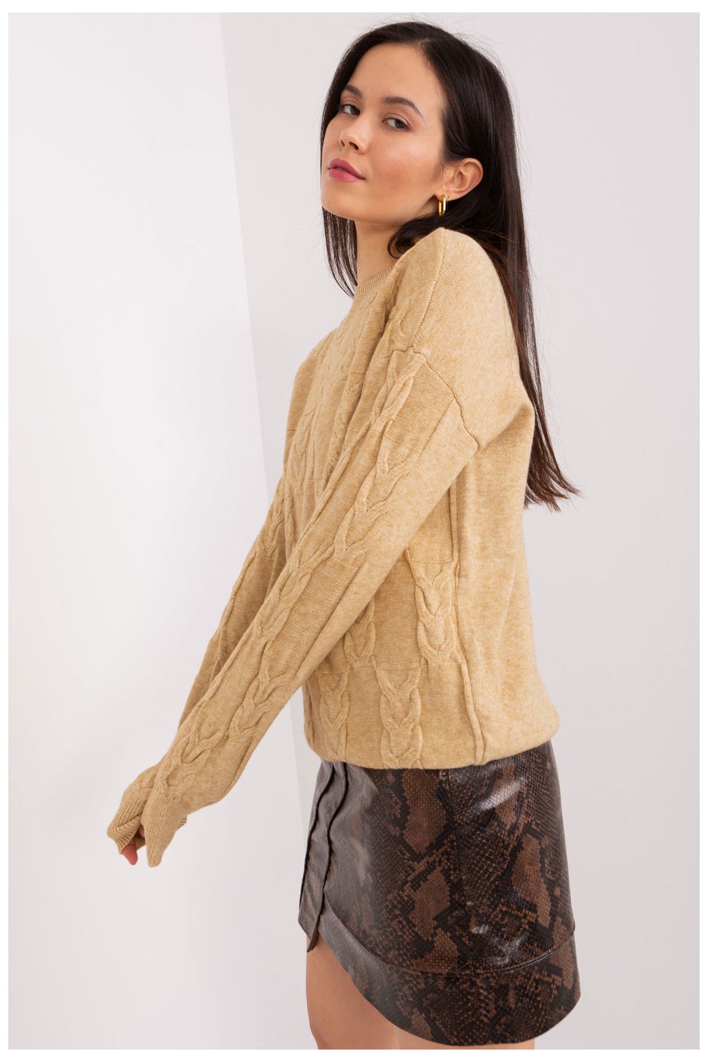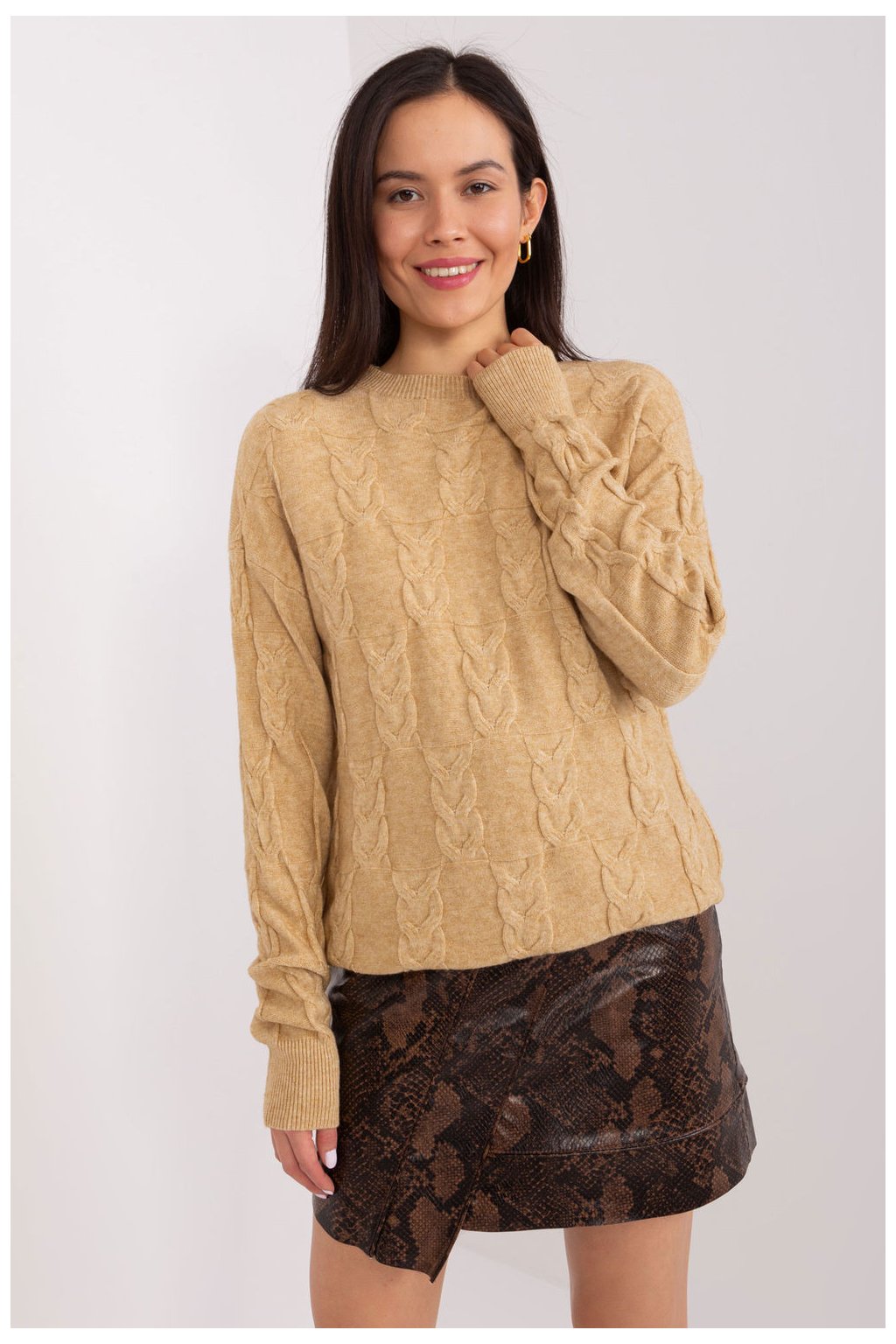 Dámský svetr, který se nasazuje přes hlavu, je skvělou volbou každý den. Klasický kulatý výstřih a dlouhé rukávy zaručují pohodlí a univerzální styl. Model se vyznačuje dominujícím vzorem a různorodou texturou materiálu, co mu dodává výjimečný charakter. Vyrobený z vysoce kvalitní směsi viskózy, nylonu a PBT, je měkký, elastický a příjemný na dotek. Ideální pro každodenní stylizace, skvěle se hodí jak k džínám, tak k elegantním kalhotám.