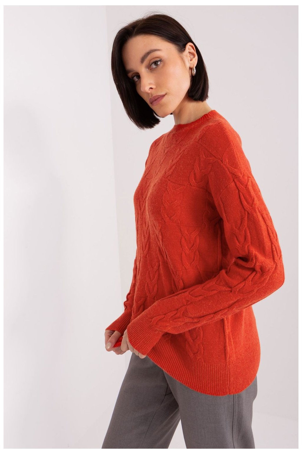 Dámský svetr s výstřihem přes hlavu je skvělou volbou pro každodenní nošení. Klasický kulatý výstřih a dlouhé rukávy poskytují pohodlí a univerzální styl. Model se vyznačuje dominantním vzorem a různorodou strukturou materiálu, co mu dodává jedinečný charakter. Vyrobený z vysoce kvalitní směsi viskózy, nylonu a PBT je měkký, pružný a příjemný na dotek. Ideální pro každodenní outfit, skvěle se hodí jak k džínám, tak k elegantním kalhotám.