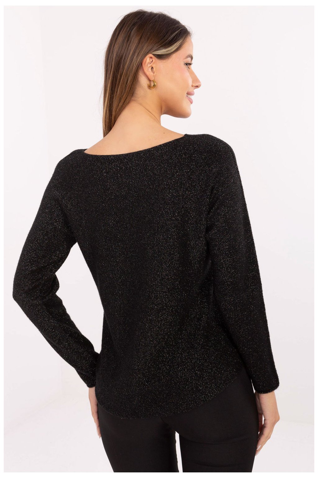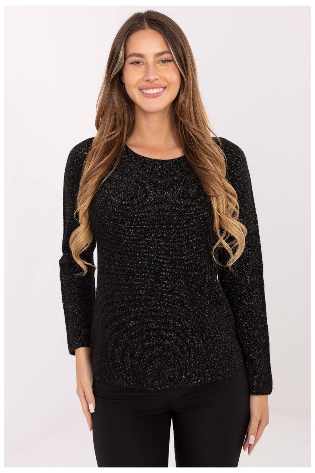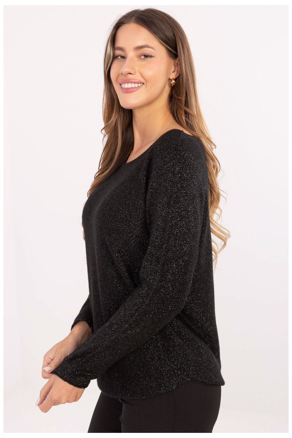 Elegantní a ženský dámský svetr s flitry je ideální volbou jak na každodenní, tak i elegantní příležitosti. Vyrobený z měkké a pružné směsi viskózy, nylonu a PBT poskytuje pohodlí nošení a decentní lesk, který dodává celku výjimečný charakter. Model má kulatý výstřih a dlouhé rukávy, standardní délka zase skvěle ladí jak s kalhotami, tak s sukněmi. Bez zapínání zaručuje pohodlí a jednoduchost použití, a decentní flitry dodávají svetru elegantní, lehce vánoční nebo večerní výraz.