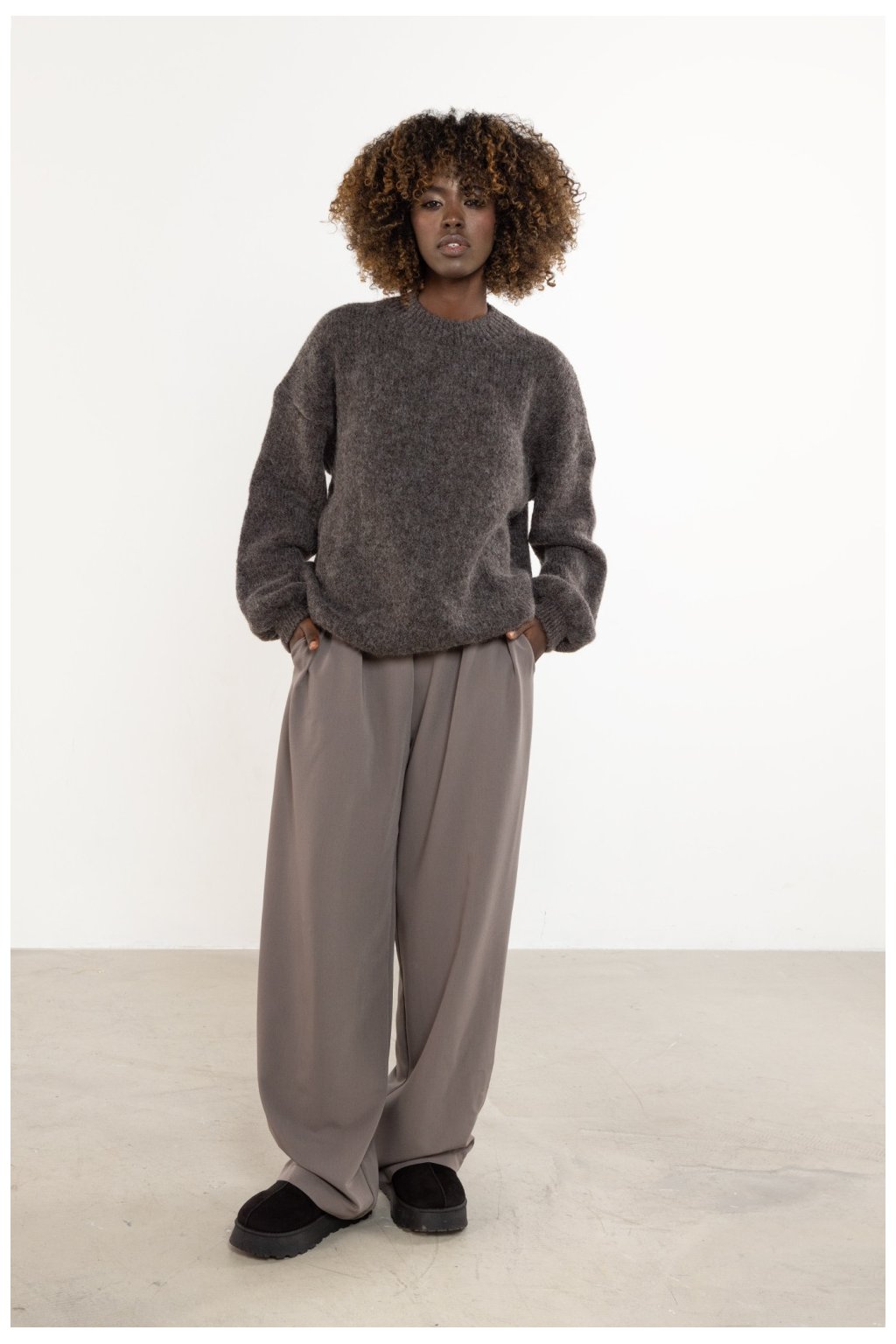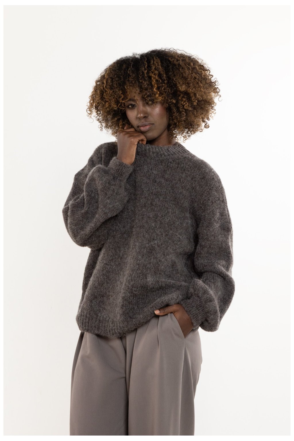 Dámský svetr s dlouhým rukávem, vyrobený z vlny a kida mohéru. Nabídka pro ženy hledající přírodní teplo, měkkost a minimalistický styl. Vyroben v místní pletárně v Polsku s důrazem na pohodlí. Tepelný, lehký a univerzální prémiový svetr, volba na mnoho sezón.