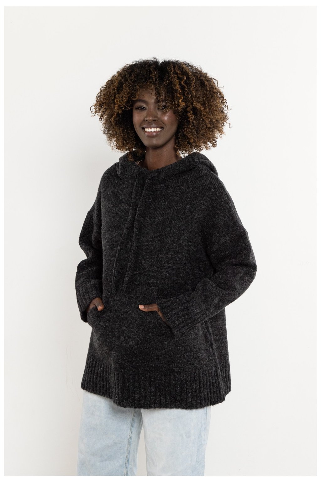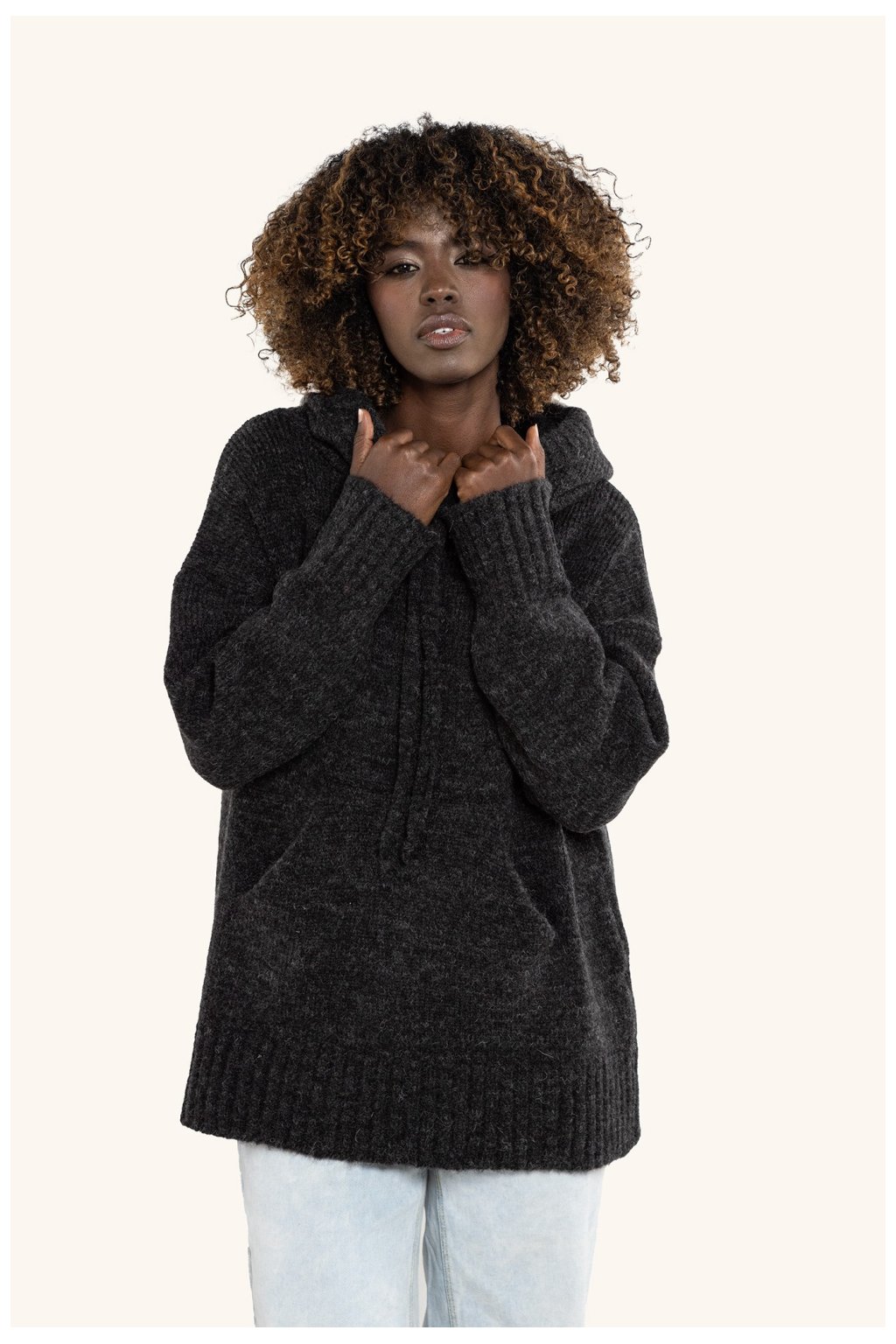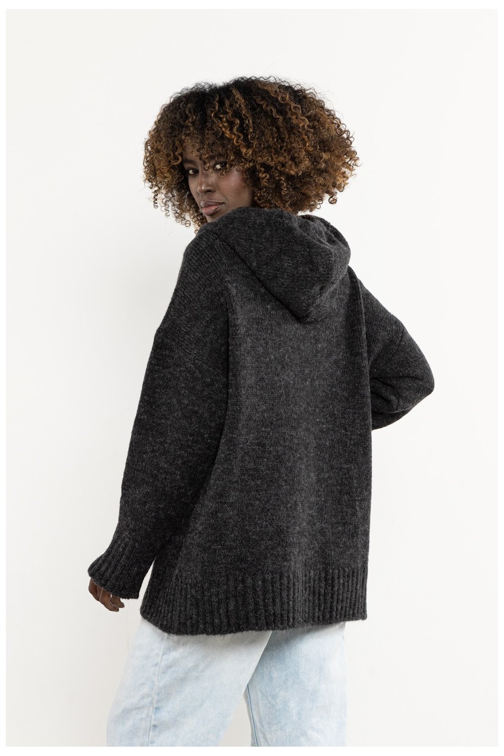 Teplý svetr s dlouhým rukávem z vlny s kapucí. Návrh pro ženy, které oceňují nadčasovou eleganci a minimalismus. Ušitý v Polsku z měkké, prodyšné pleteniny s vlnou, hřeje a poskytuje pohodlí na podzim, v zimě a ve chladných ránech. Univerzální, teplý, funkční svetr typu hoodie, odolná volba na mnoho sezón.