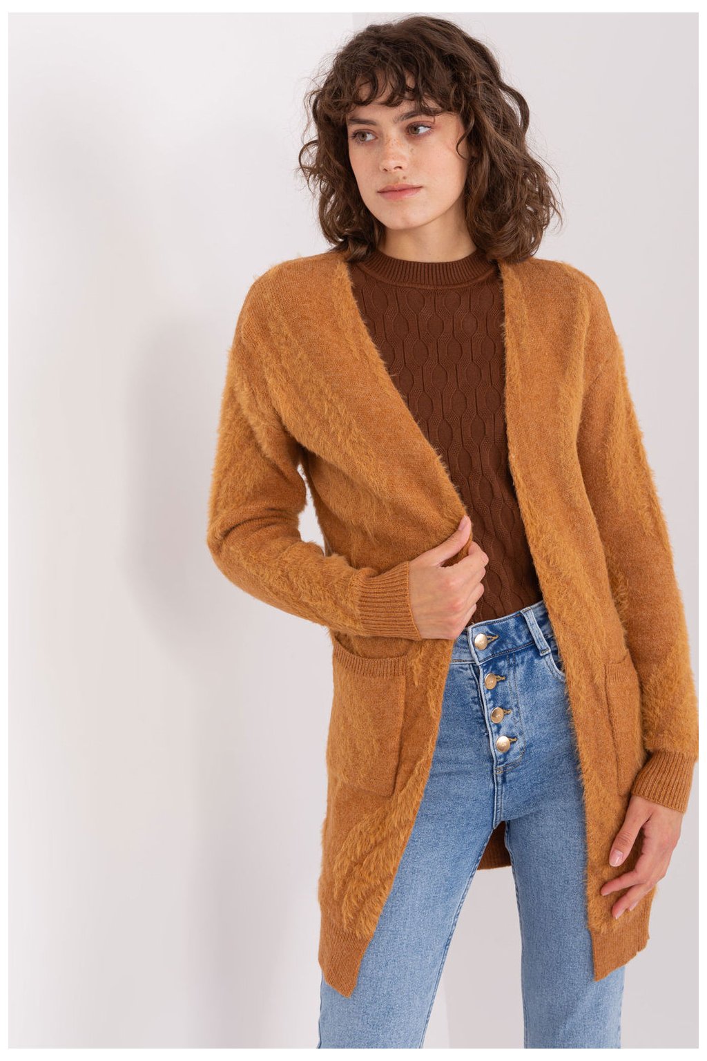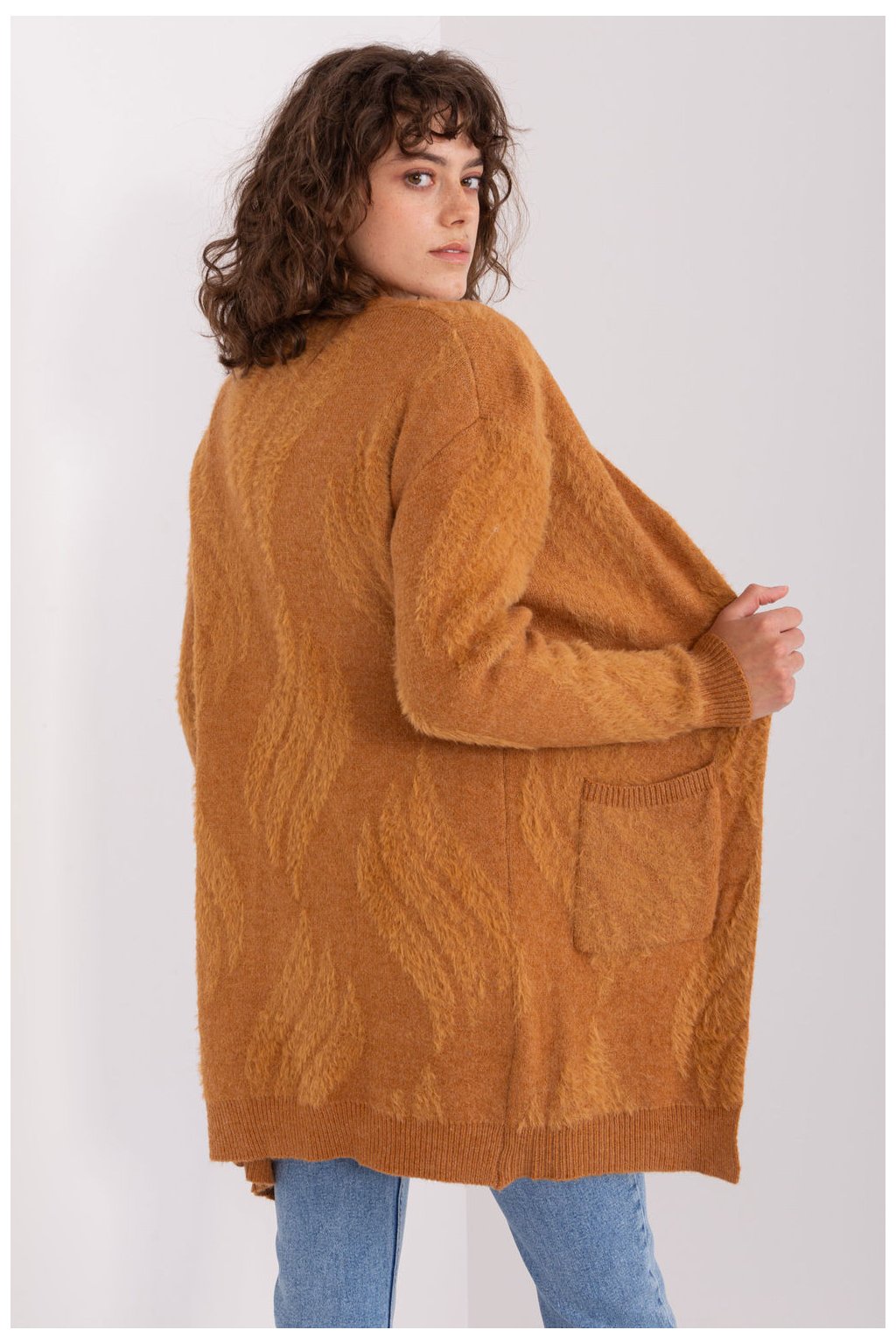 Tento svetr s přehozem je dokonalým kouskem do šatníku pro každodenní nošení. Je vyroben z pestré tkaniny, je pohodlný a módní. Dlouhý rukáv a délka sahající přes boky zajišťují teplo a pohodlí. Je to ideální kousek, který přes sebe můžete přehodit v chladnějších dnech nebo večer. Kardigan nemá zapínání, což mu dodává na ležérnosti a volnosti při nošení. Praktickým prvkem jsou navíc nakládané kapsy, do kterých si můžete uložit drobnosti nebo zahřát ruce. Je to pohodlná a módní volba, která doplní mnoho každodenních vzhledů.