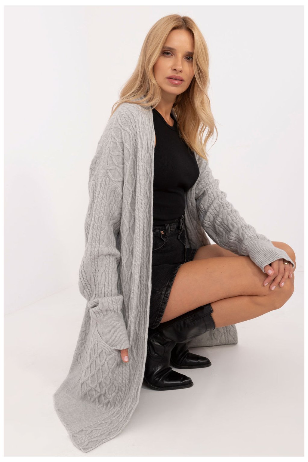 Dlouhý kardigan bez zapínání je ideální přehoz na každý den, který kombinuje casual styl s pohodlím. Vyroben z směsi akrylu, polyesteru a polyamidu poskytuje teplo a pohodlí, zároveň je lehký a příjemný na dotek. Různorodá struktura materiálu mu dodává výjimečný charakter, což ho činí nejen praktickým, ale i stylovým. Kardigan má dlouhé rukávy a vložené kapsy, které zvyšují jeho funkčnost. Jeho dlouhý tvar je ideální pro chladnější dny a skvěle se hodí k casual outfitům. Je to univerzální kus oblečení, který skvěle doplní každý outfit a dodá mu elegantní volnost.