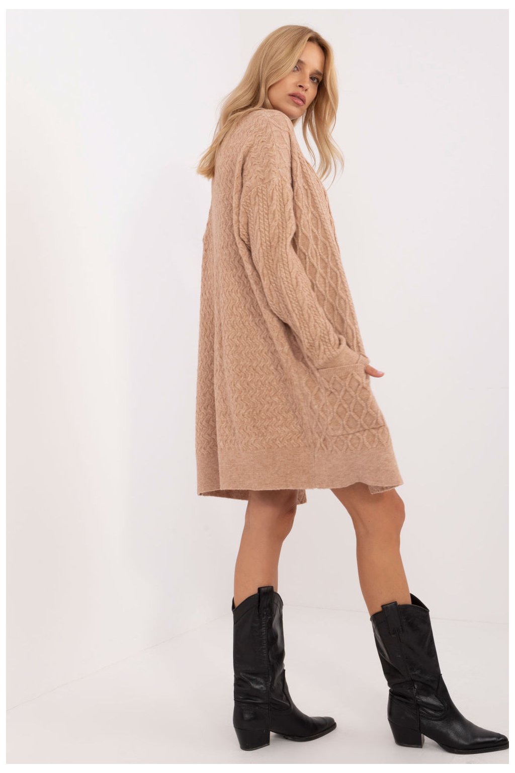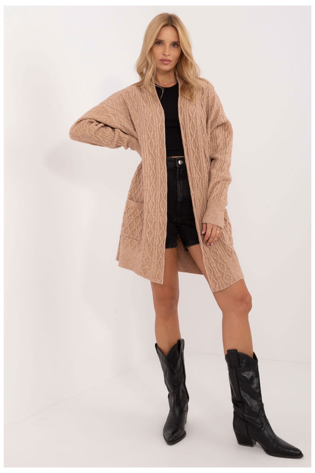 Dlouhý kardigan bez zapínání je ideální vrstva na každý den, která kombinuje casual styl s pohodlím. Vyroben z akrylové, polyesterové a polyamidové směsi poskytuje teplo a pohodlí, zatímco zůstává lehký a příjemný na dotek. Různorodá faktura materiálu mu dodává výjimečný charakter, což ho činí nejen praktickým, ale také stylovým. Kardigan má dlouhé rukávy a vkládané kapsy, které zvyšují jeho funkčnost. Jeho dlouhý tvar se perfektně hodí do chladnějších dnů, ideálně se hodící k casual stylizacím na každý den. Je to univerzální kus šatníku, který skvěle doplní každý outfit, dodávajíc mu elegantní volnost.