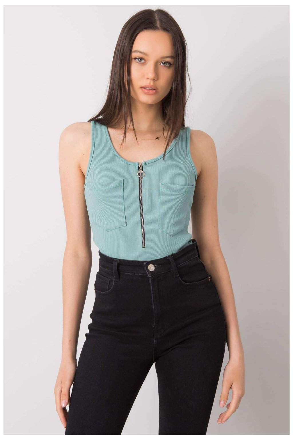 Tričko s kulatým výstřihem, ramínka. Zapínání na zip vpředu a ozdobné kapsy. Ideální na léto.