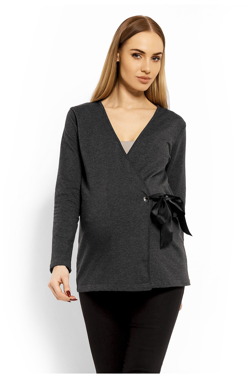 Halenka s obálkovým výstřihem. Halenka s nastavitelným zavazováním. Lze nosit i po těhotenství. Vysoce kvalitní bavlna. Měkký materiál.