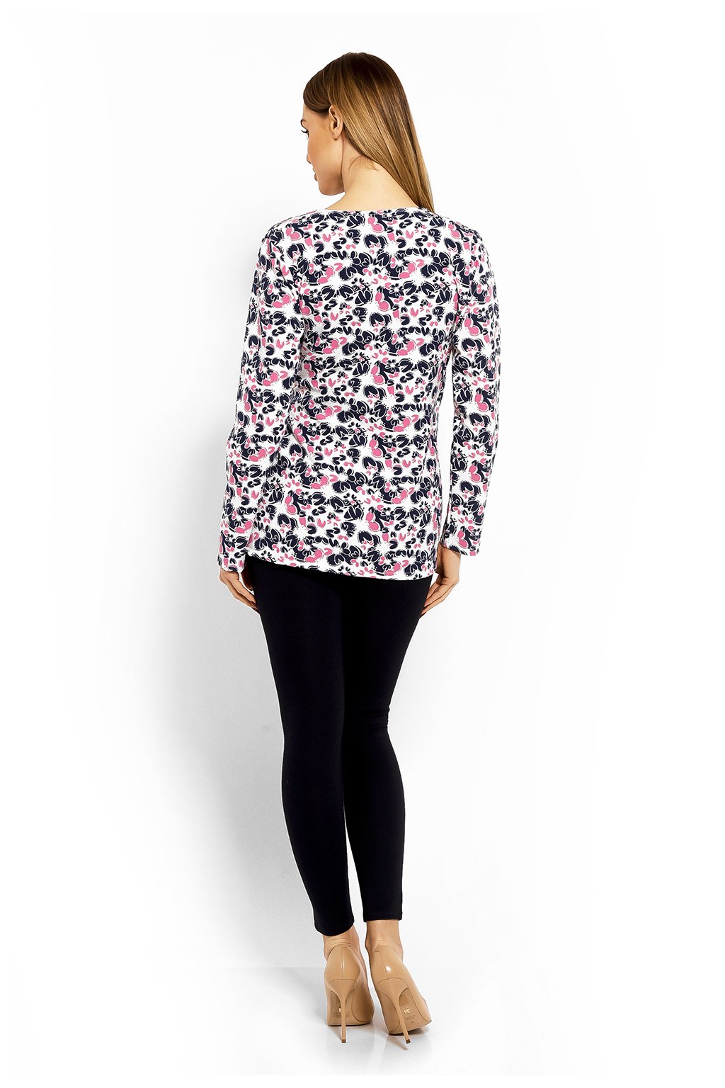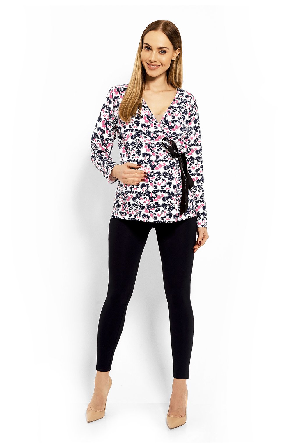 Halenka s obálkovým výstřihem. Halenka s nastavitelným zavazováním. Lze nosit i po těhotenství. Měkká tkaná látka.
