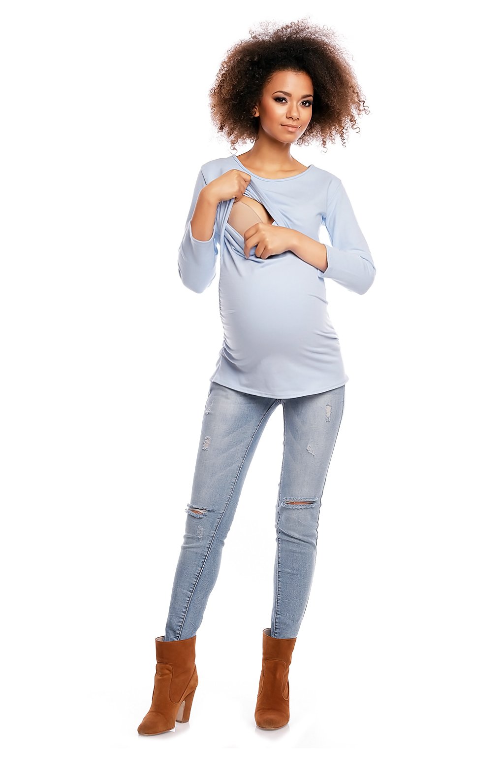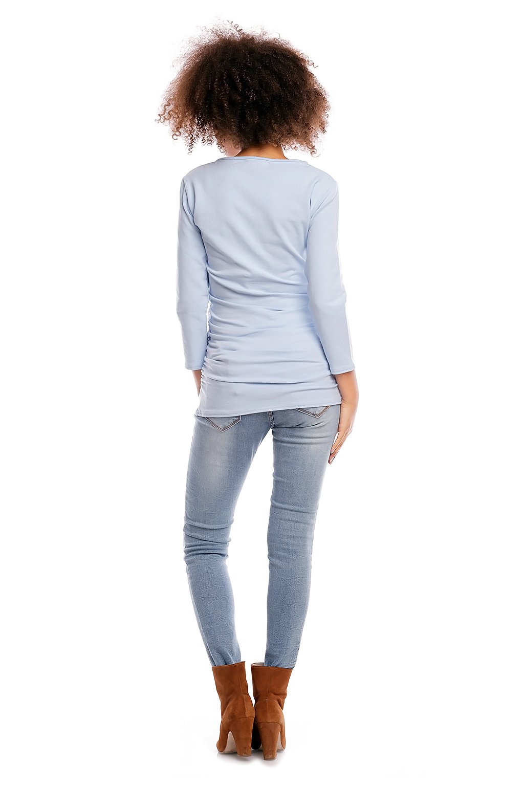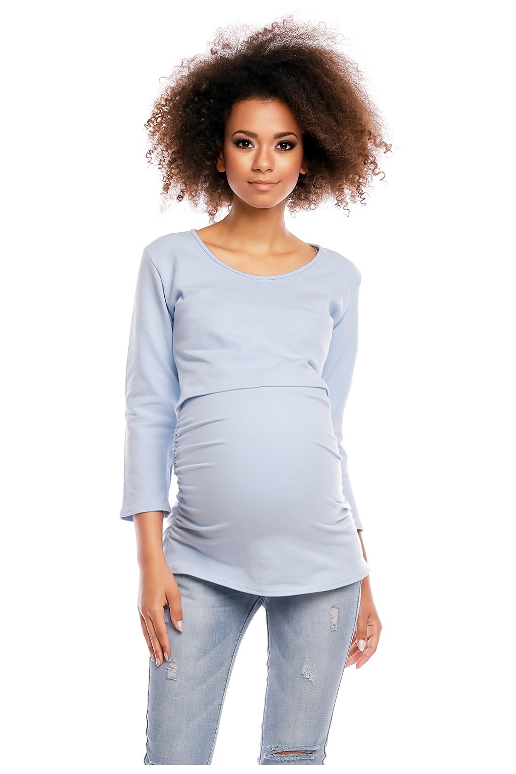 Jednoduchá těhotenská tunika s 3/4 rukávy a lodičkovým výstřihem ušitá s ohledem na budoucí maminky. Ideální během těhotenství a kojení. Skrytá vyvýšená vrstva, která umožňuje kojení, a záhyby, které po těhotenství zakrývají nedokonalosti postavy, zaručují pohodlí a snadné používání.