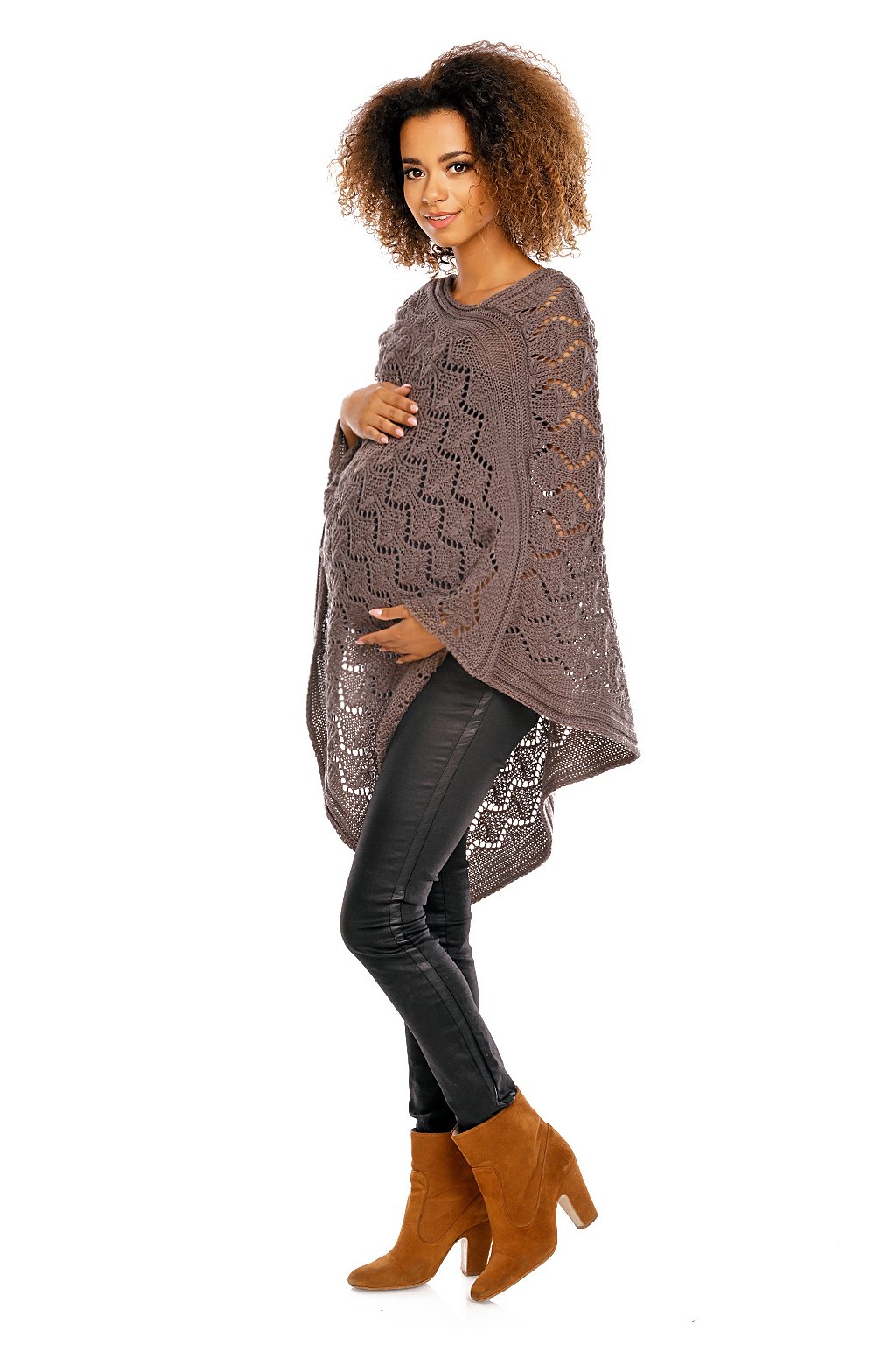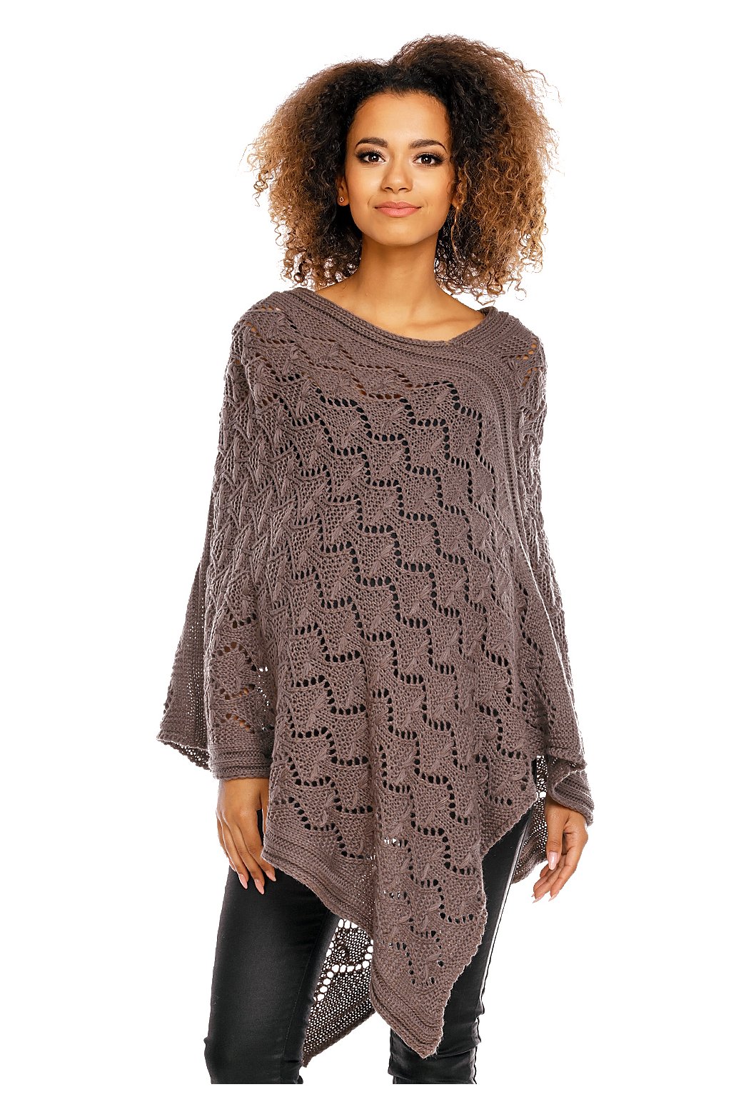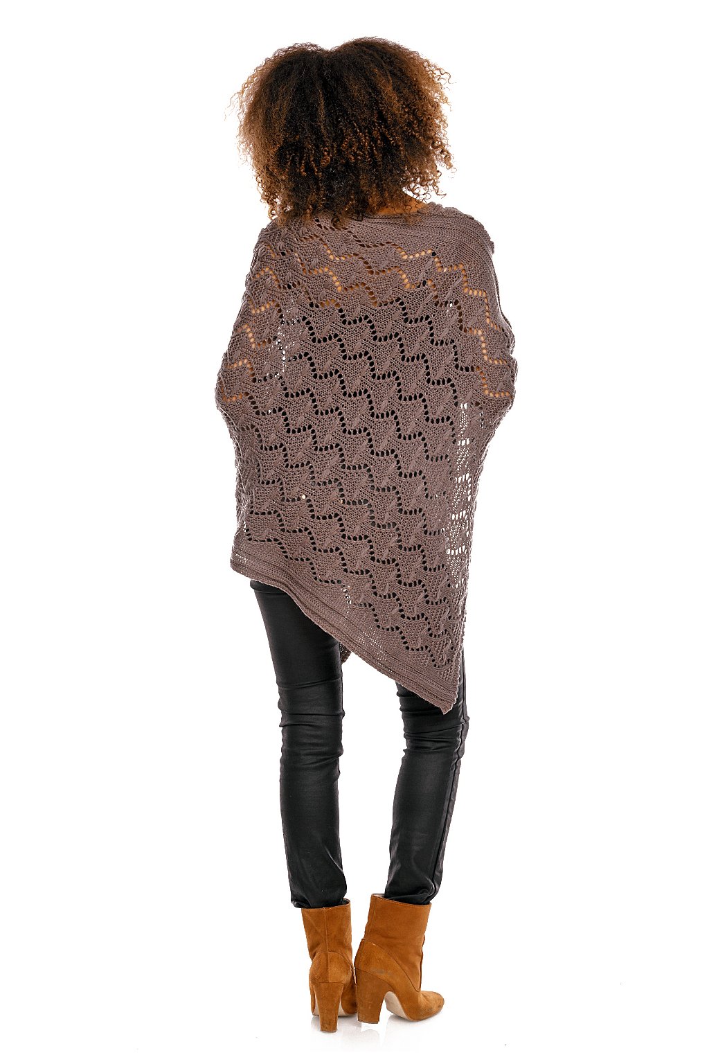 Elegantní prolamované pončo ideální pro chladné večery na konci léta nebo podzimní dny. Lehké, ale hřejivé pončo nadměrné velikosti.