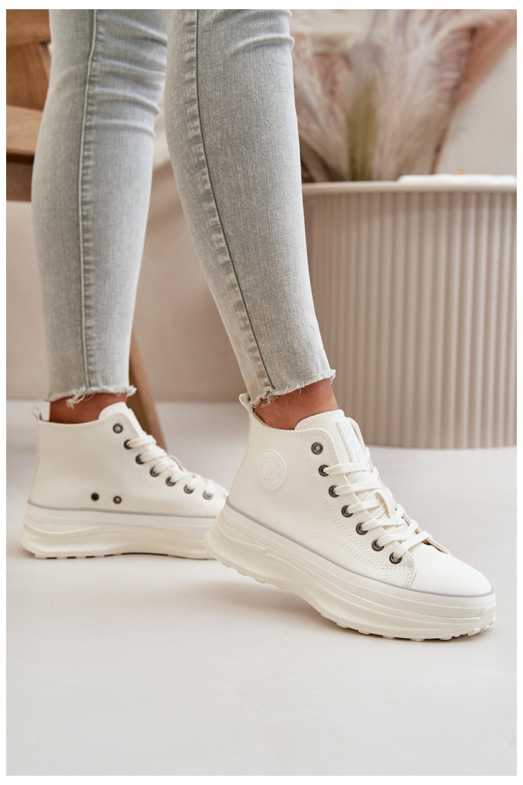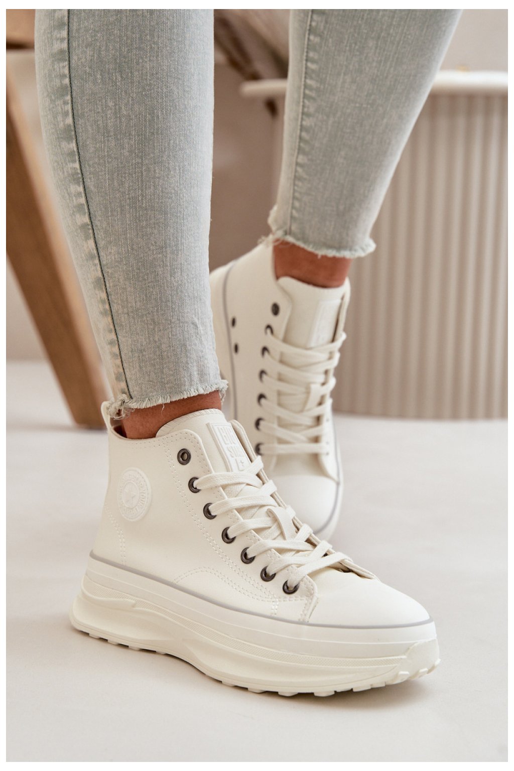 Dámské tenisky od značky Big Star. Vyrobeny z vysokokvalitního materiálu PU, který připomíná přírodní kůži. Umístěny na masivní platformě, která nejen přidává několik centimetrů na výšce, ale také zajišťuje jedinečný komfort nošení po celý den. Klasické šněrování a zaoblený špičatý tvar dodávají nadčasový vzhled. Značka loga na boku základny.