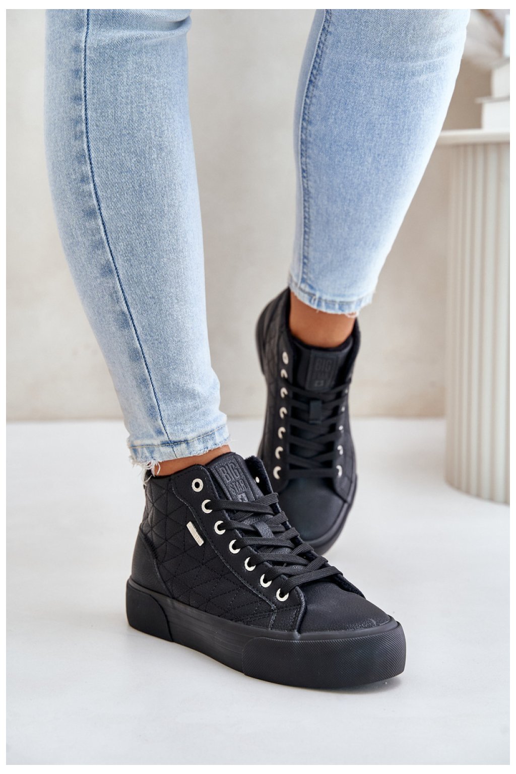 Dámské tenisky od značky Big Star. Vyrobeno z ekologické kůže. Tenisky jsou šněrovací, což umožňuje dokonalé přizpůsobení noze. Zateplený vnitřek poskytuje teplo, takže jsou ideální volbou na podzim a zimu a kombinují módní vzhled s funkčností. Tento model se vyznačuje četným prošíváním na svršku.