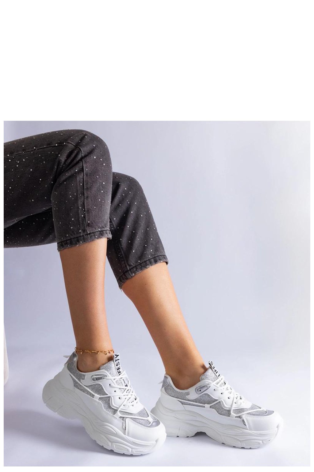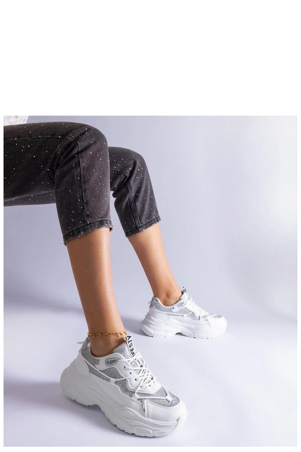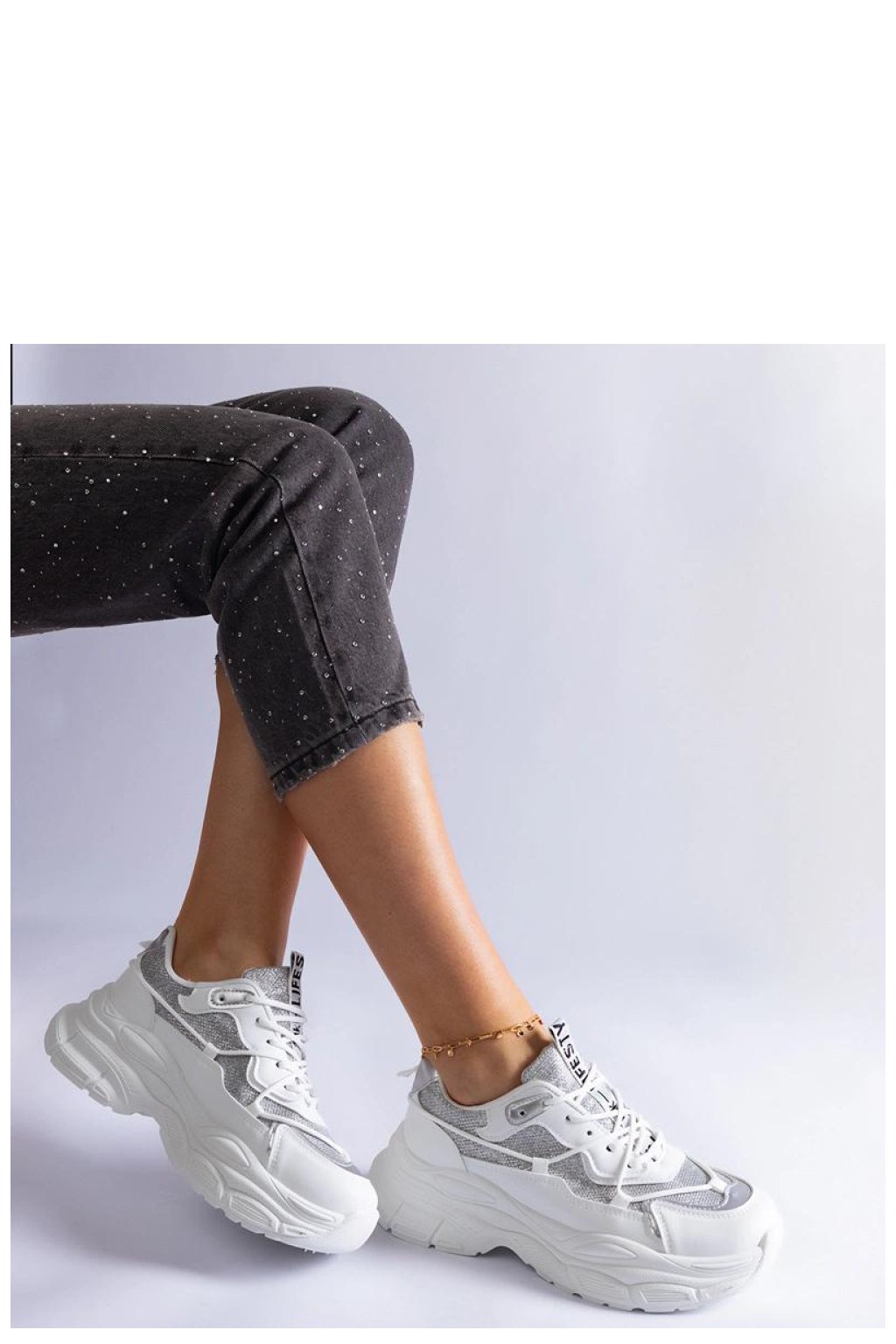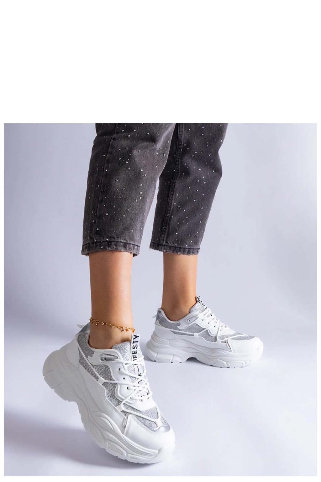 Bílé tenisky Rigel jsou ideální volbou pro ženy, které milují třpyt! Tyto módní boty mají flitrové vložky, které jim dodávají jedinečný charakter. Skvěle se hodí jak na každodenní nošení, tak na speciální příležitosti, dodávají lesk každému outfitu. Tenisky mají pohodlnou gumovou podrážku, která zajišťuje pohodlí při nošení. Zapínání na tkaničky umožňuje ideální přizpůsobení k noze. Vyrobeno z vysoké kvality ekologické kůže. Nízká výška, bílá podrážka. Vsadte na módní vzhled s teniskami Rigel!