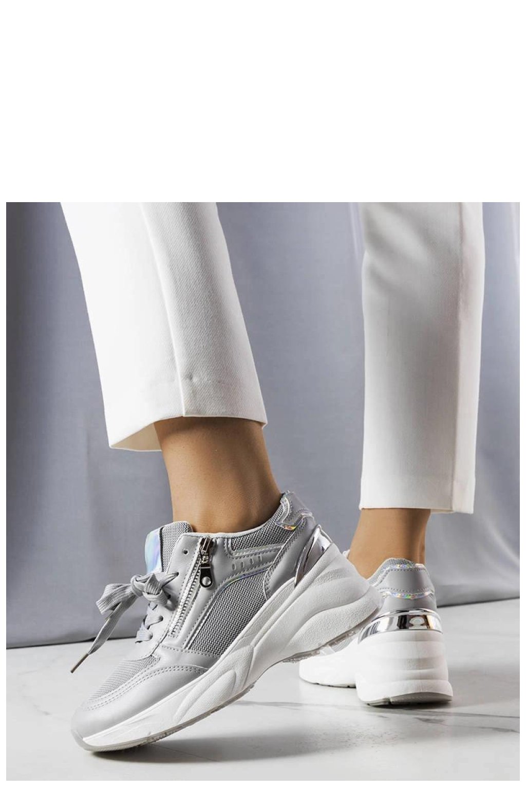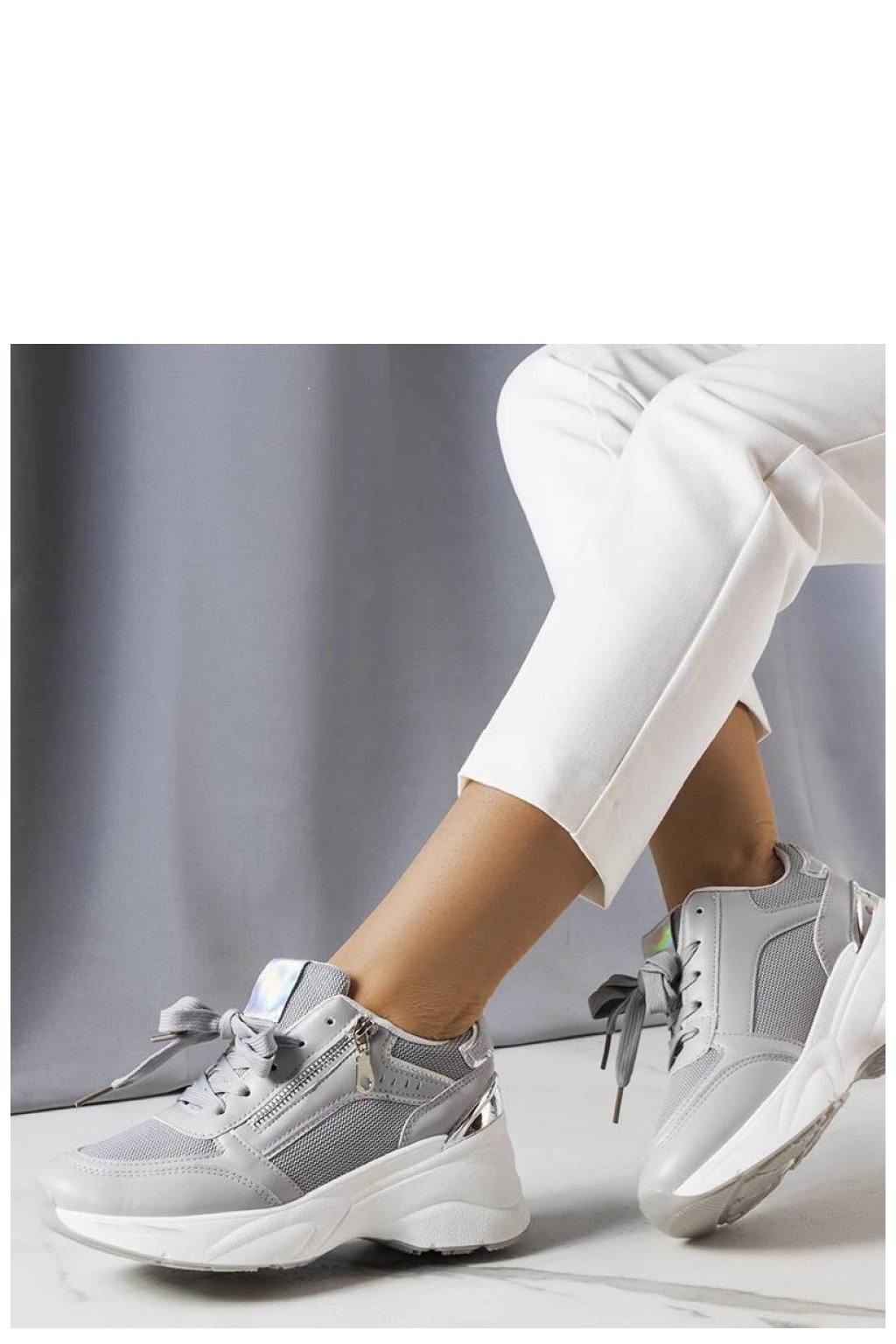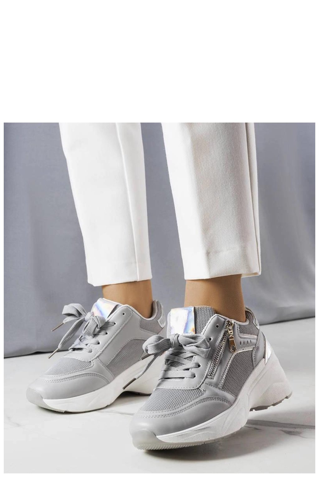Sivé tenisky na podpatku Stacey jsou ideální obuví na léto pro každou stylovou ženu. Vyrobené z vysoce kvalitních materiálů, mají šněrovací uzavírání, které zajistí ideální přizpůsobení noze. Bílá pryžová podrážka dodává lehkost a zajišťuje, že boty jsou pohodlné při nošení. Tyto tenisky se skvěle hodí jako doplněk k denním městským stylizacím. Stojí za to vsadit na ně, abyste přidali trochu sportovní elegance do svého šatníku!