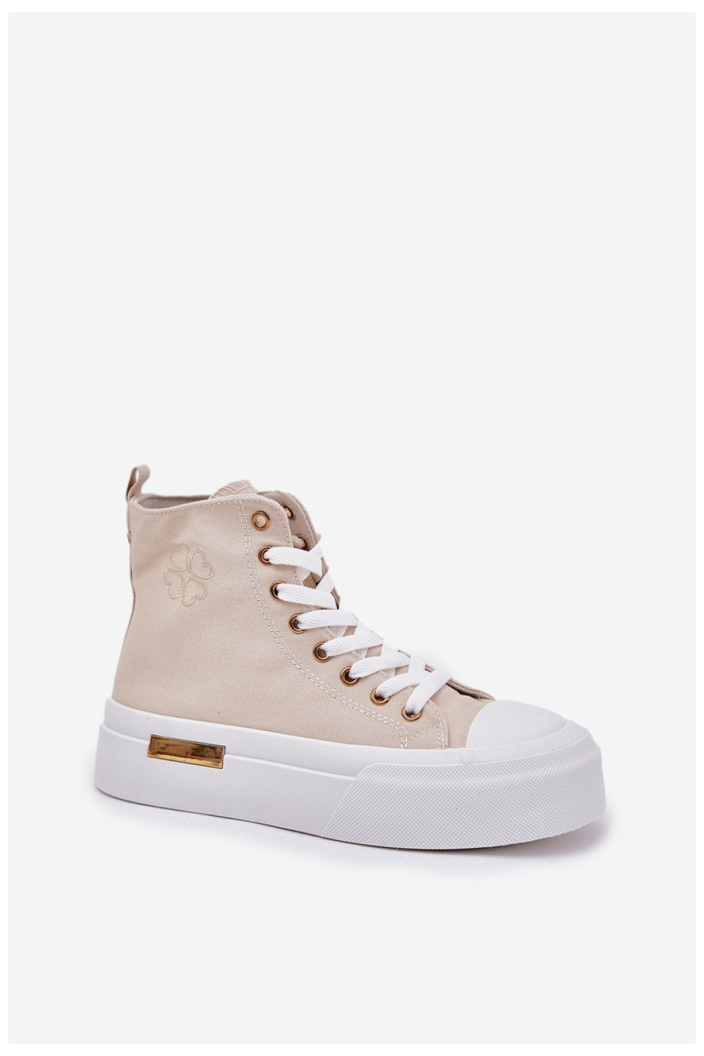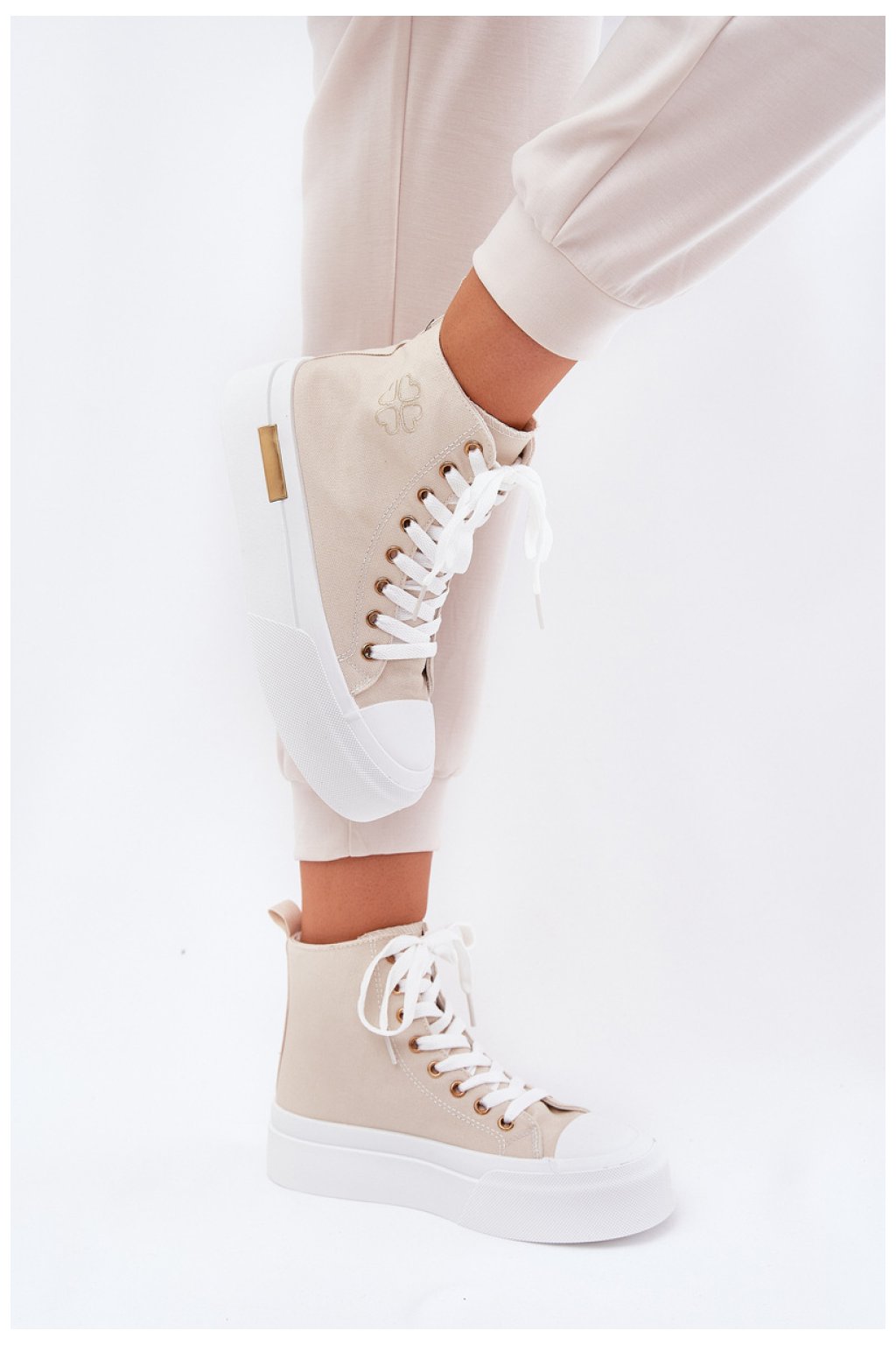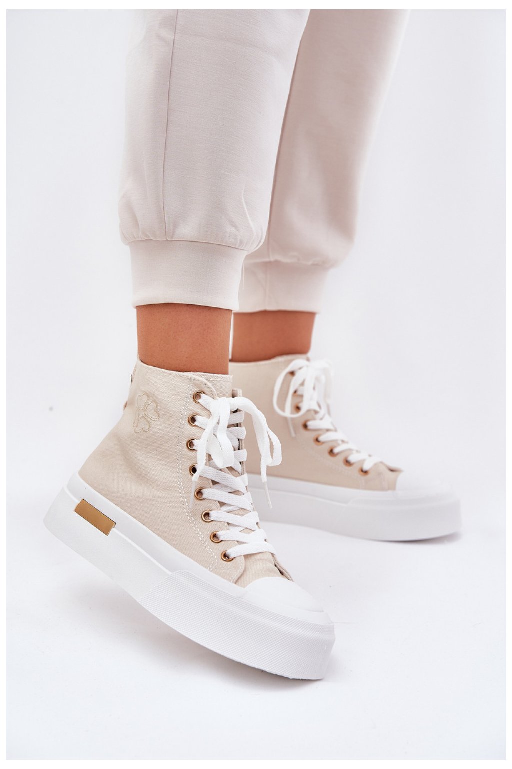 Vysoké dámské tenisky vyrobené z textilního materiálu. Umístěné na platformě z gumového materiálu, který poskytuje pohodlí a moderní vzhled. Zaoblené špičky dodávají lehkost, zatímco platforma zajišťuje pohodlí po celý den. Tyto tenisky skvěle ladí s různými styly, ideální jak pro každodenní, tak sportovní outfit, spojují funkčnost s módním akcentem.