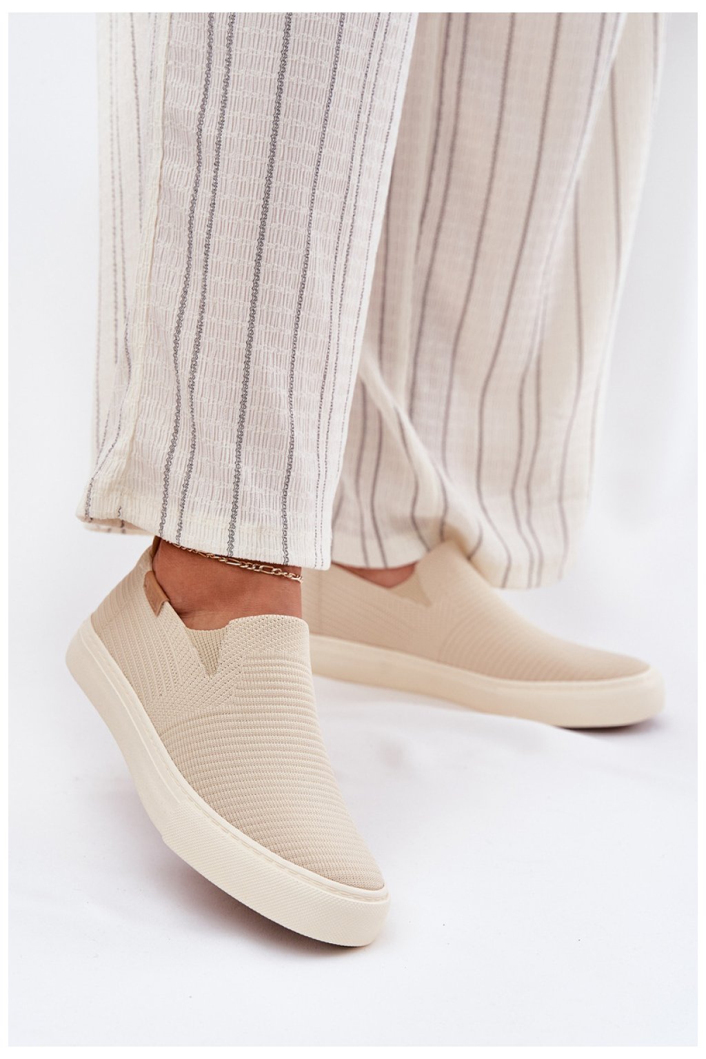 Tenisky slip-on pro ženy od značky Big Star, vyrobené z vysokokvalitní textilní látky, jsou ideální volbou na každý den. Díky měkké vložce poskytují pohodlí po celý den a kulaté špičky přidávají pohodlí každým krokem. Pryžová podrážka zaručuje stabilitu a dobrou přilnavost, čímž tyto tenisky dělají skvělým doplňkem casualových stylizací. Jednoduchý střih zaručuje, že se hodí k mnoha různým outfitům.