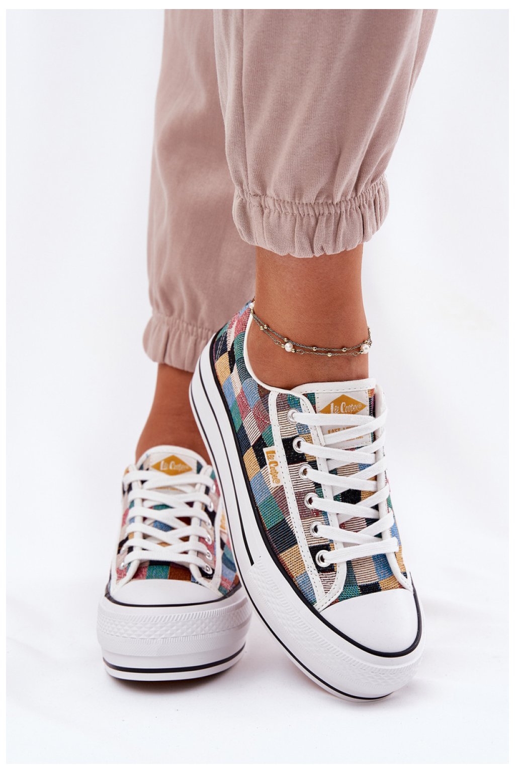 Dámské tenisky od Lee Cooper, vyrobené z textilního materiálu, představují ideální spojení pohodlí a stylového vzhledu. Umístěné na platformě, která jemně zvyšuje postavu. Klasické šněrování umožňuje dokonalé přizpůsobení noze, a měkká textilní stélka poskytuje odpovídající tlumení. Tyto tenisky jsou skvělou volbou pro každodenní outfit!