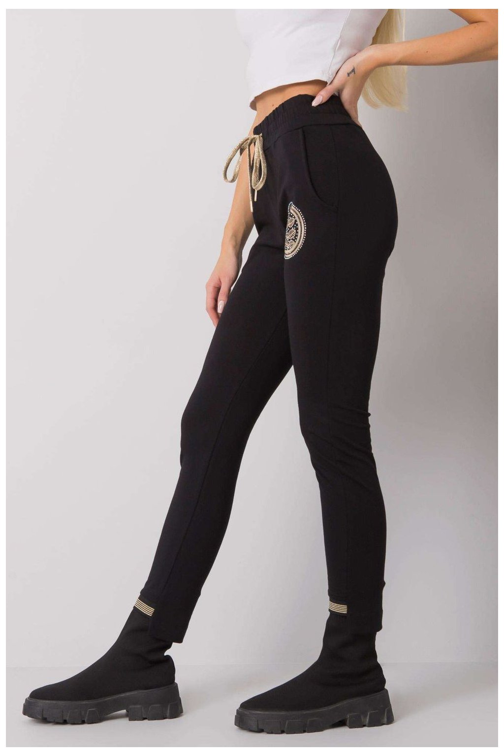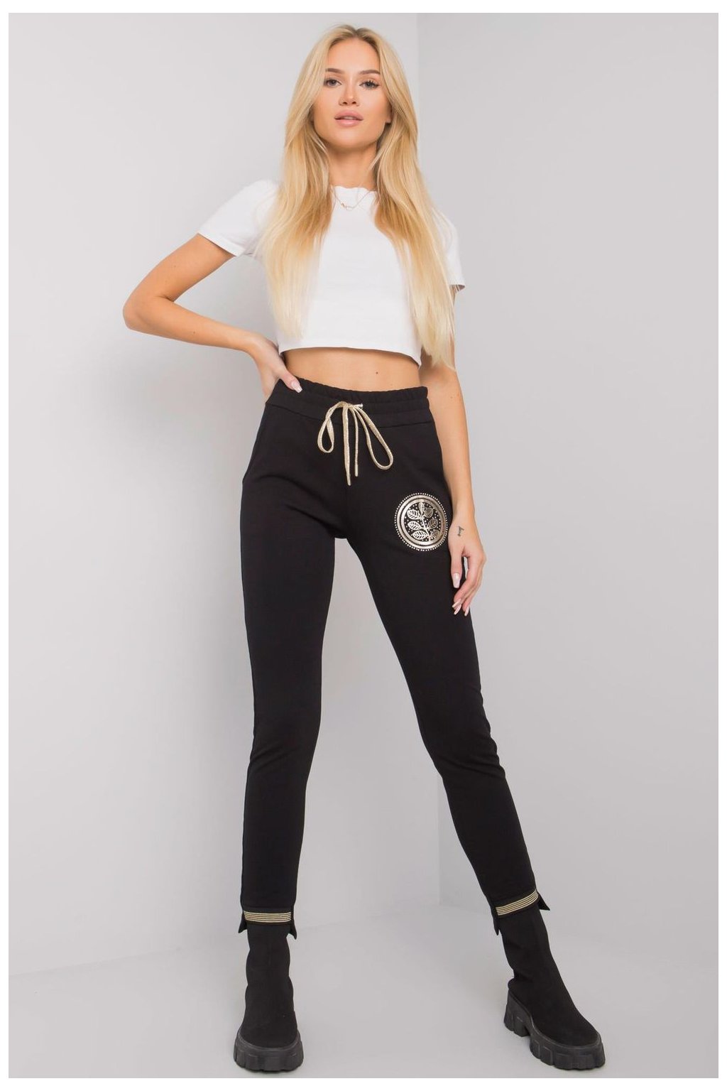 Dámské černé tepláky s potiskem. Pas s gumičkou a stahovací šňůrkou.
