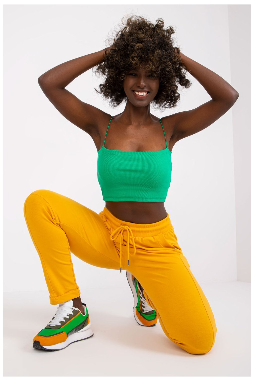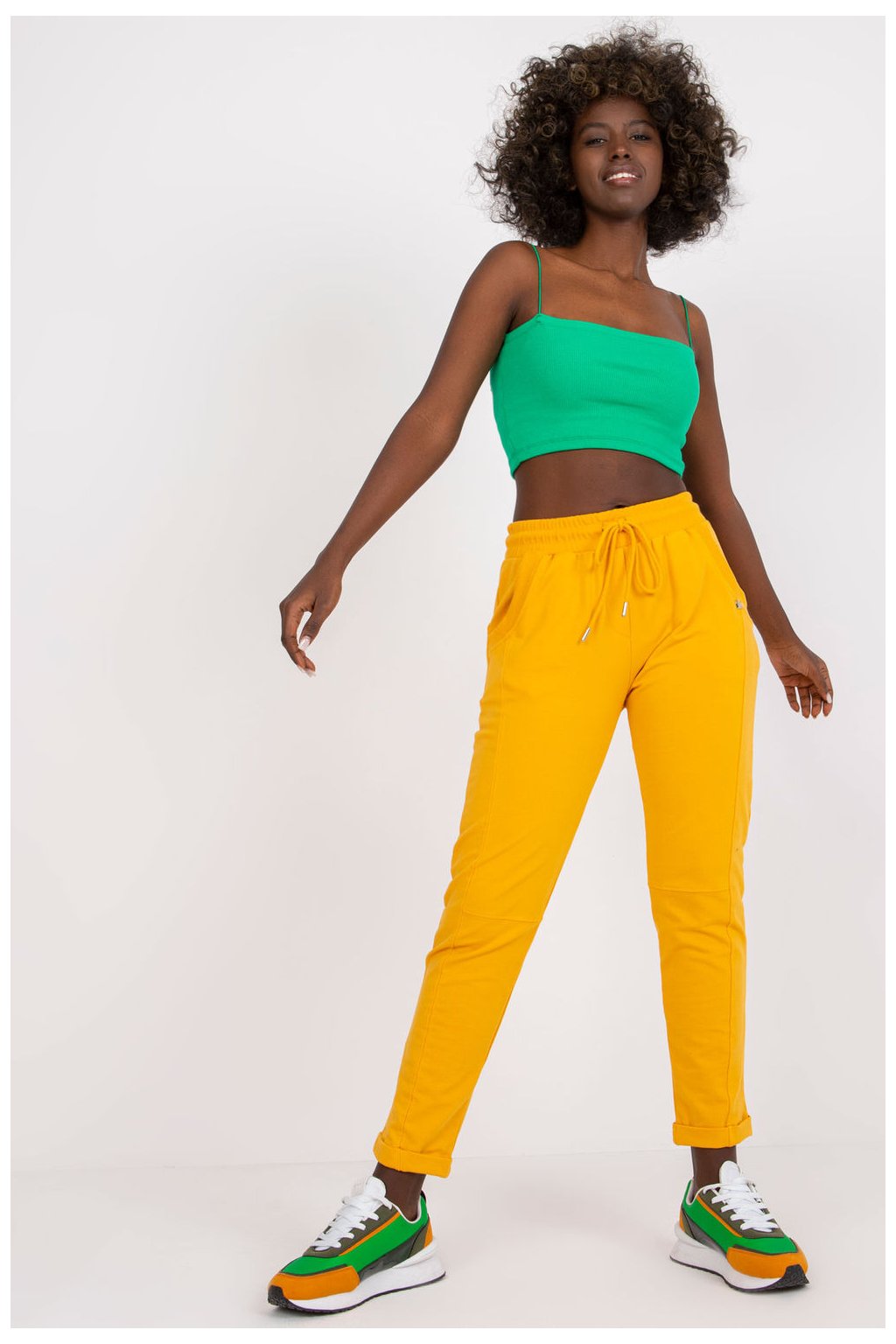 Tepláky s vysokým pasem, elastickým pasem a šňůrkou na stažení. Kalhoty s kapsami na bocích. Ideální pro každodenní nošení.