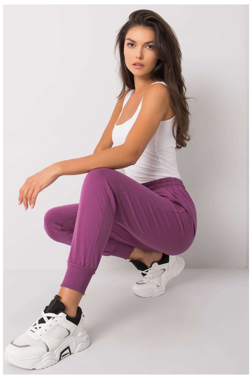 Tepláky s gumou a zavazováním v pase. Na bocích jsou nakládané kapsy, nohavice jsou zakončené švy.