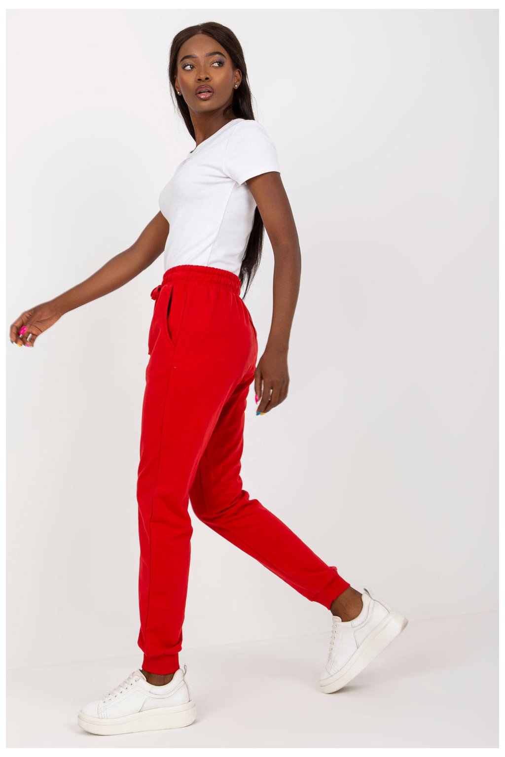 Tepláky s elastickým pasem, kapsy na bocích. Kalhoty s vysokým pasem a šňůrkou v pase.