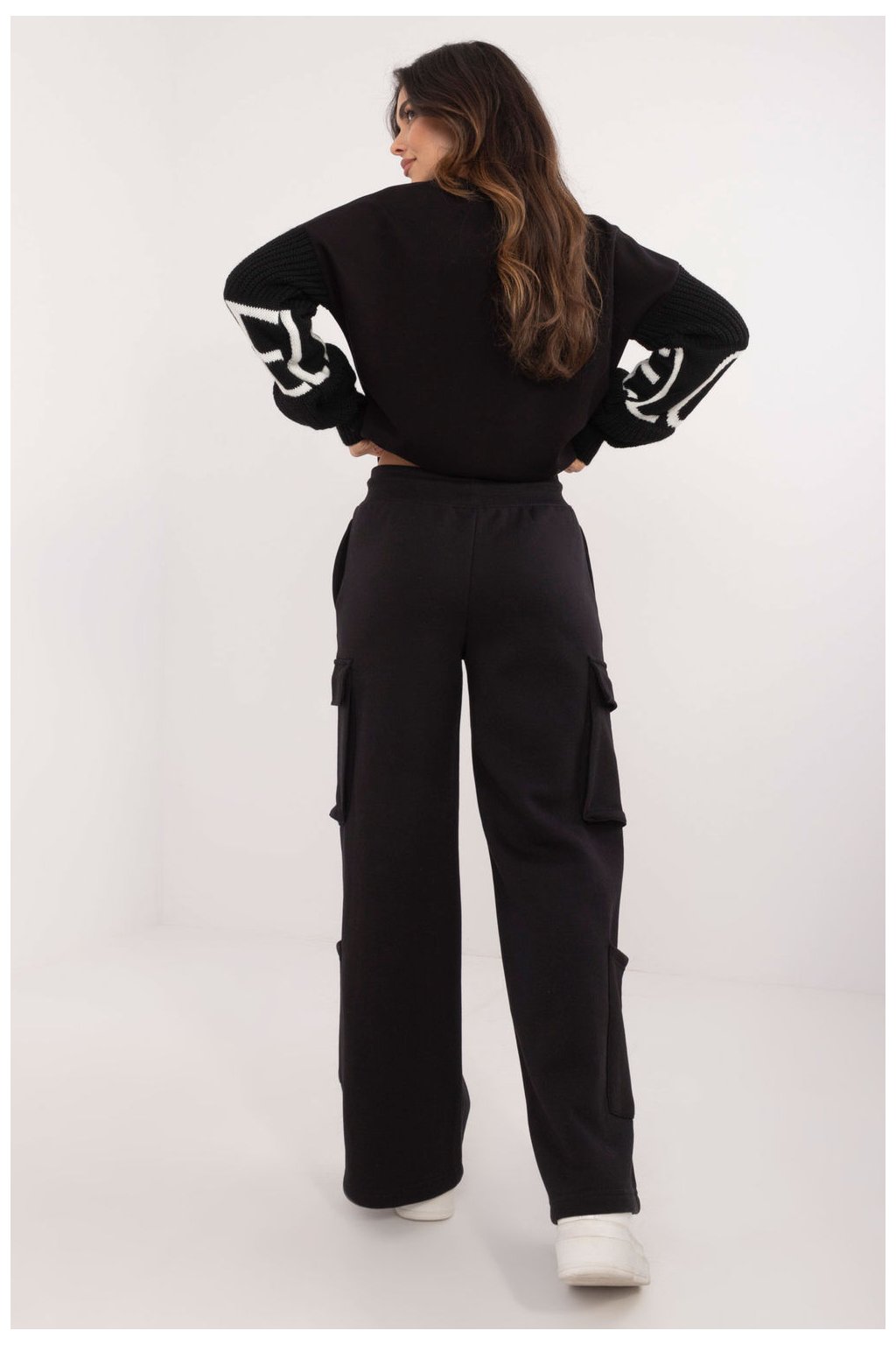 Volné teplákové cargo kalhoty, ideální na každý den, kdy potřebujete pohodlí a styl. Vyrobené z směsi bavlny a polyesteru, mají lehké zateplení, díky čemuž jsou vhodné i na chladnější dny. Mají vysoký pas a šňůrku v pase, co umožňuje ideální přizpůsobení se postavě. Široké nohavice dodávají volný charakter a praktické cargo kapsy po stranách a další kapsy na zip zajišťují funkčnost a módní vzhled. Hladký vzor z nich dělá snadno kombinovatelné s různými kousky oblečení.