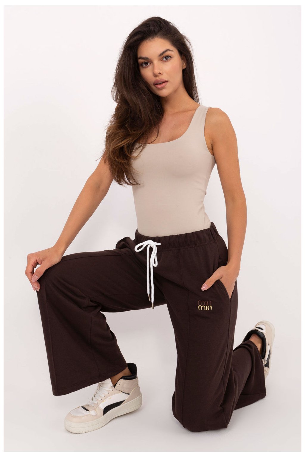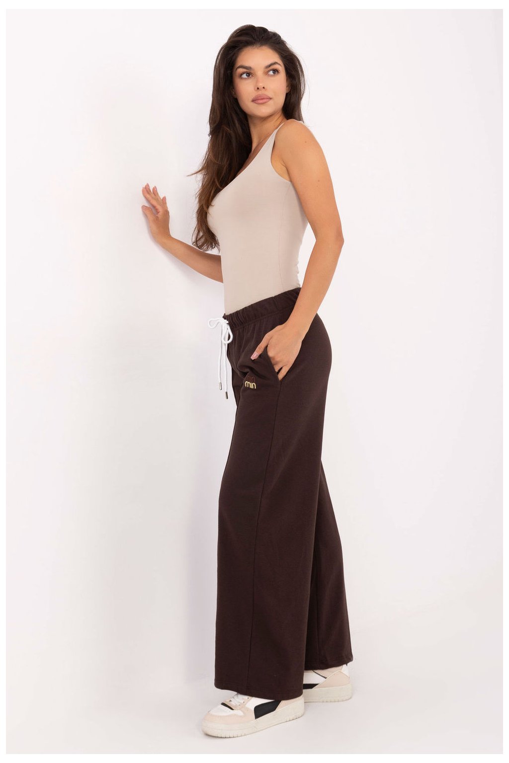 Kalhoty s casualovým charakterem, vytvořené s ohledem na každodenní pohodlí. Vyrobené z měkké a odolné směsi bavlny a polyesteru, zajistí pohodlí při nošení a odolnost proti zmačkání. Hladký materiál dělá model univerzálním a snadno se kombinuje s různými styly. Kalhoty mají vysoký pas a široké nohavice s výrazným lemem, co jim dodává moderní, lehce elegantní šmrnc. V páse jsou praktické šňůrky a vložené boční kapsy, které zdůrazňují jejich funkčnost. Dalším akcentem je jemná vyšívaná ozdoba umístěná na jedné z nohavic, dodávající celku originální charakter. Ideální na každý den, spojují sportovní volnost s nádechem elegance.