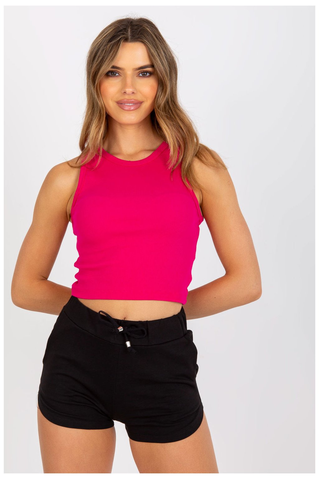 Klasický top z žebrované tkaniny, kulatý výstřih. Tričko v černé barvě, ideální k mnoha outfitům.