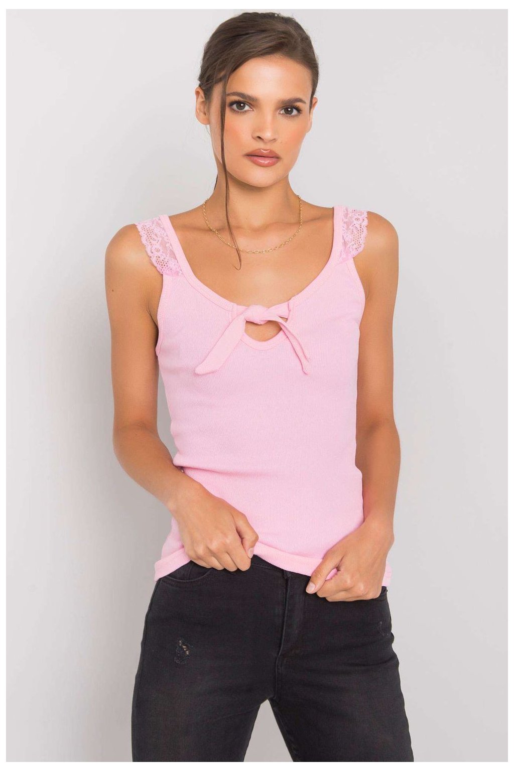 Košile s ramínky zdobenými krajkou. Kulatý výstřih s ozdobným lemováním. Top z akrylové žebrované tkaniny.