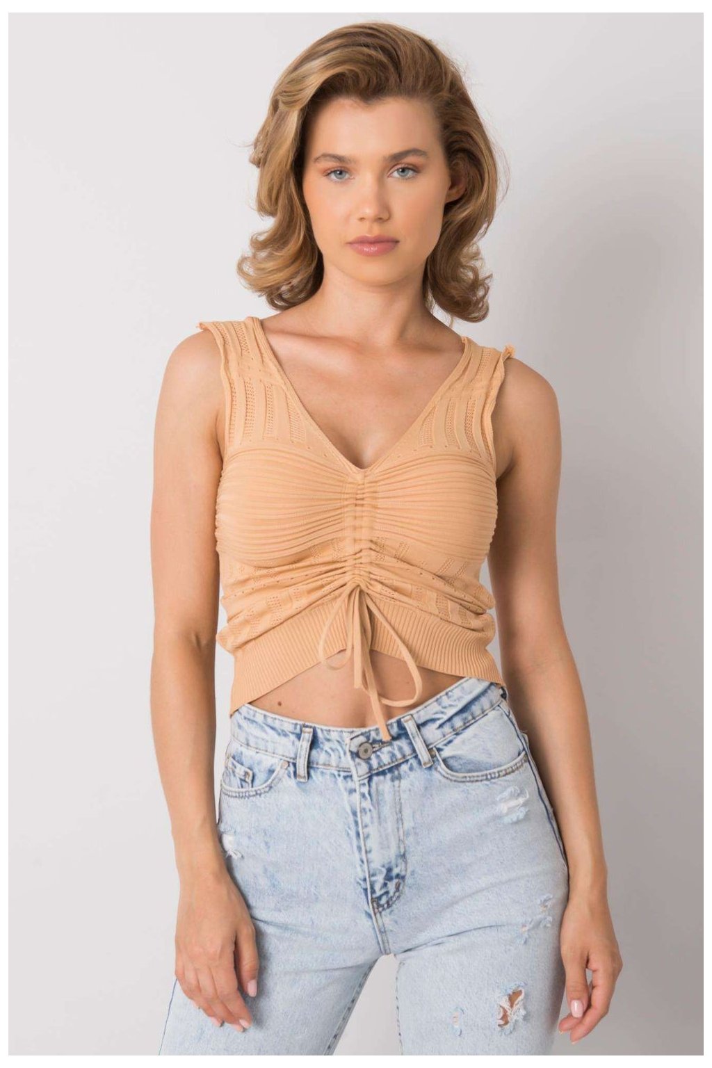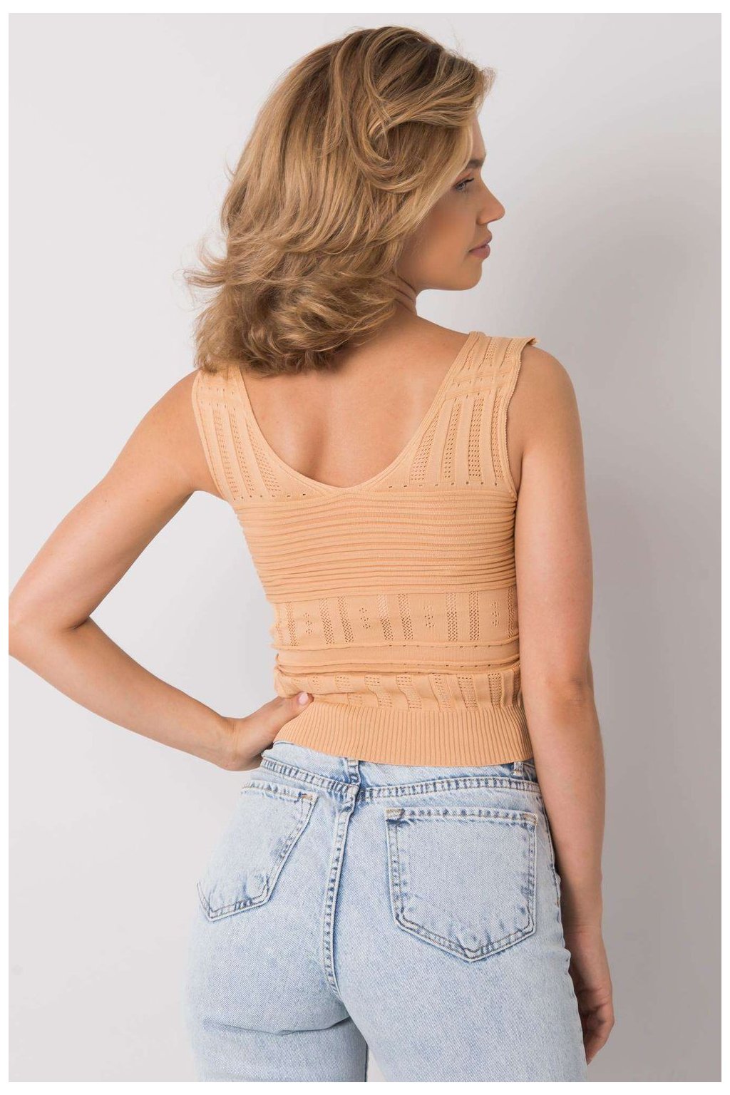 Krásný pletený top z měkkého akrylového materiálu se stane ozdobou každého dámského šatníku. Žebrovaný model se dokonale přizpůsobí siluetě a díky správné šířce a délce se pohodlně nosí.