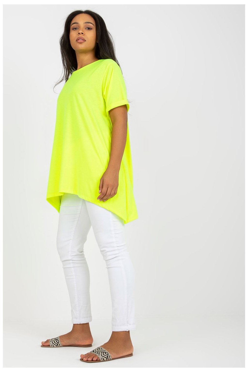 Plus size tunika s krátkými rukávy a lodičkovým výstřihem. Asymetrický spodní díl tuniky. Ideální pro mnoho stylů.