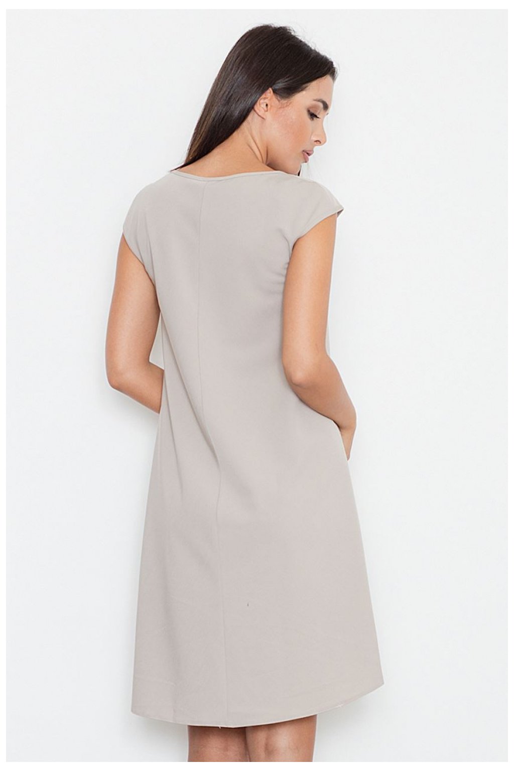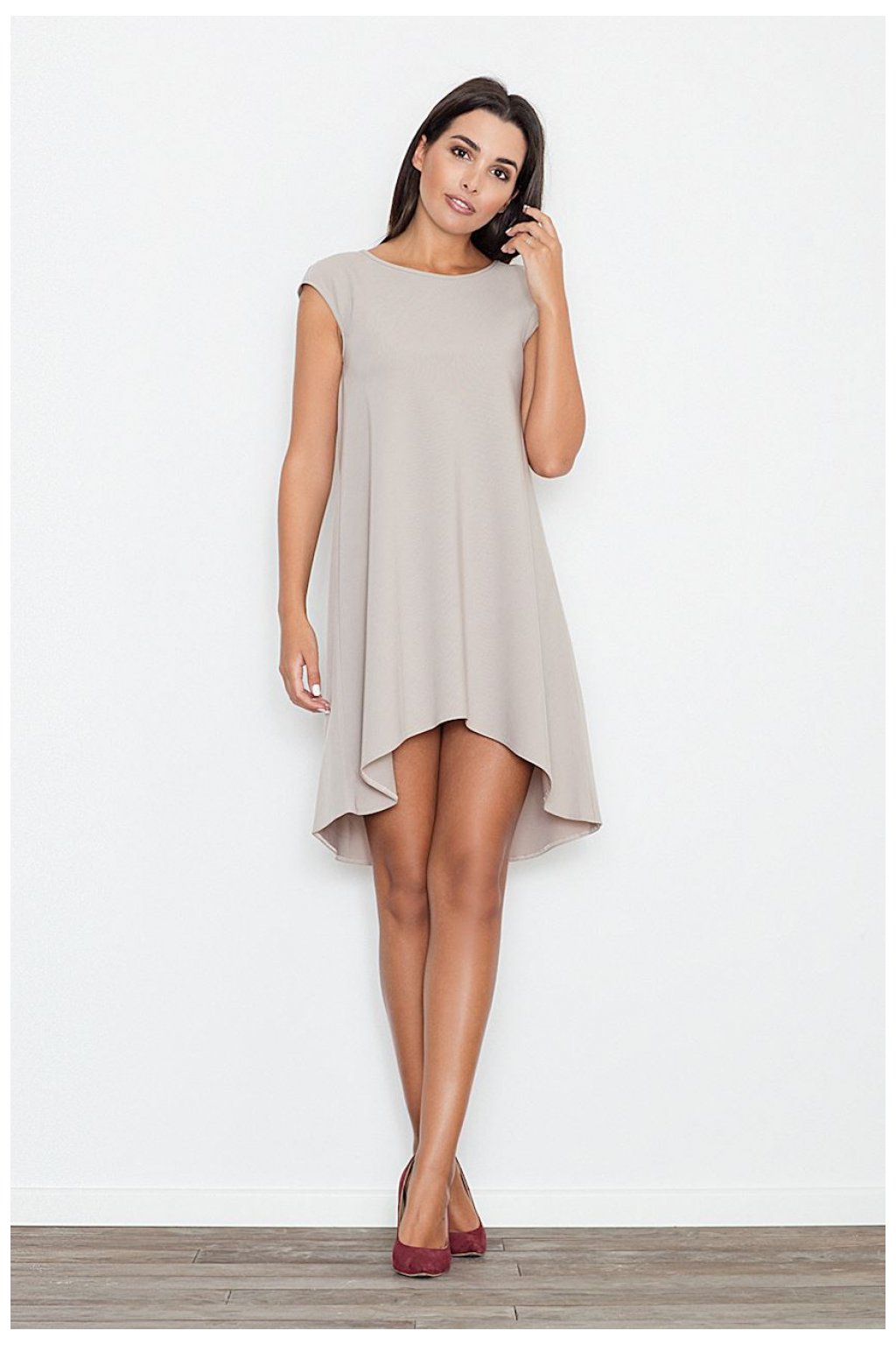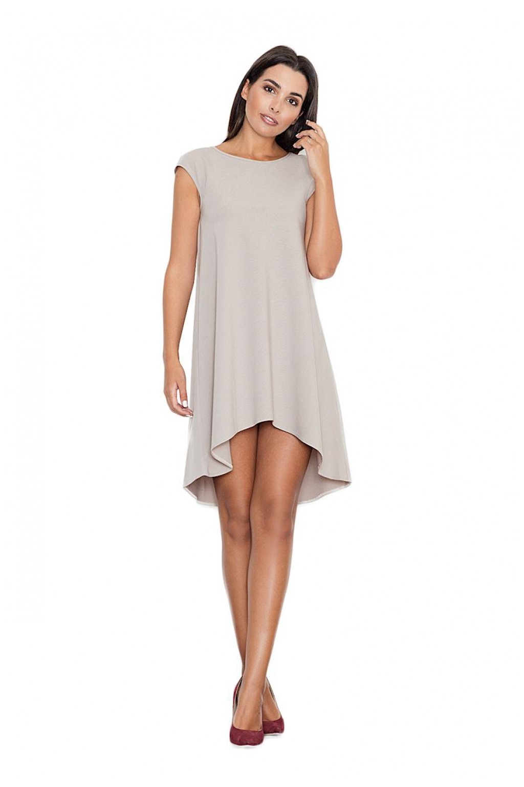 Elegantní volné šaty s asymetrickým střihem. Je vyrobena ze vzdušného materiálu a má zapínání na zip.