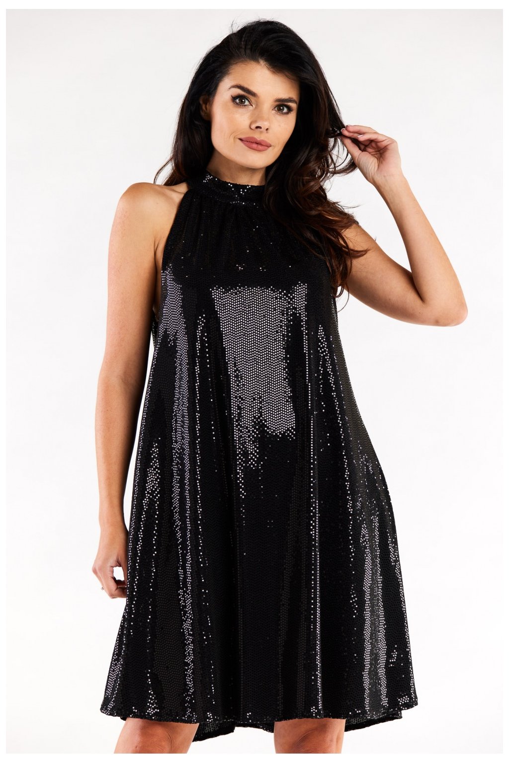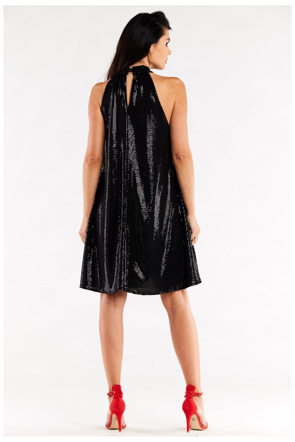 Volné, rozšířené šaty s ozdobným volánovým výstřihem, na stojáčku se zapínáním na knoflíky na zádech. Šaty jsou ušité na elastické podšívce. Šaty vyrobené v Polsku.