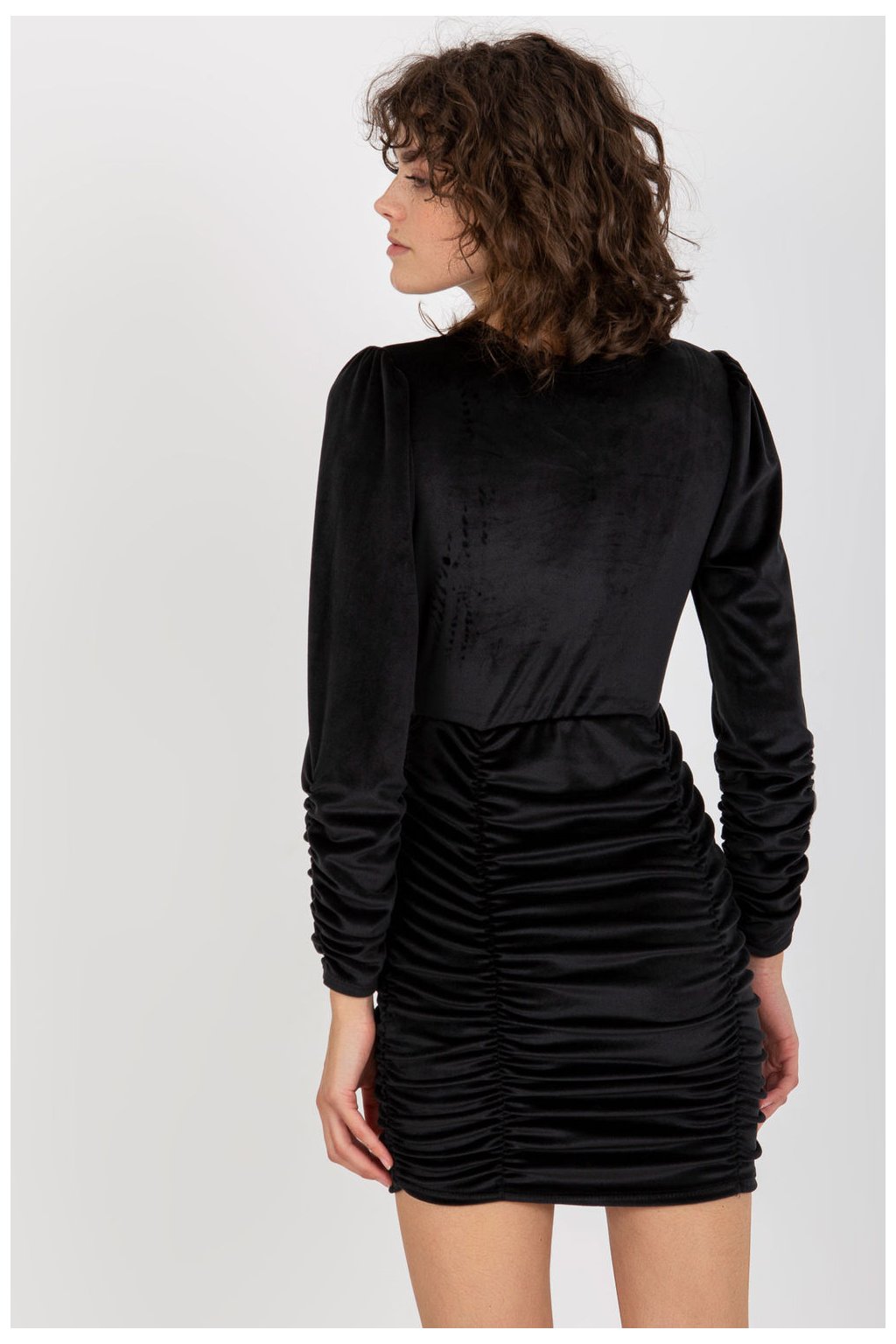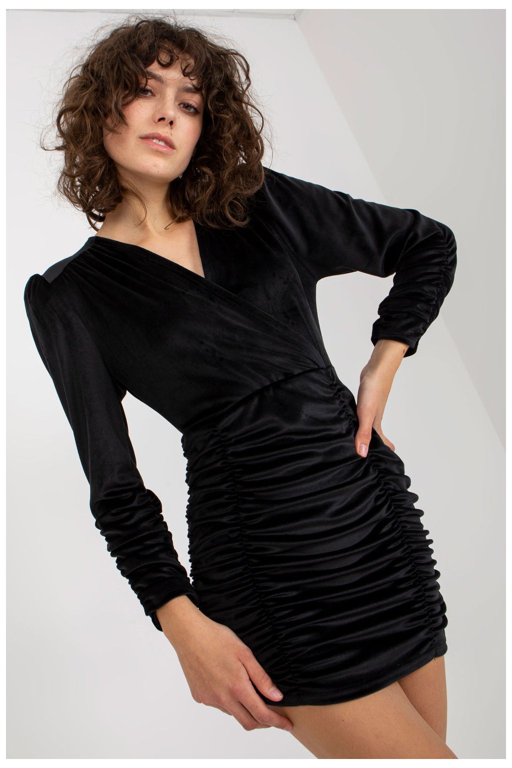 Velurové šaty s dlouhými rukávy a ozdobnými záhyby. Skvěle se hodí pro mnoho příležitostí.