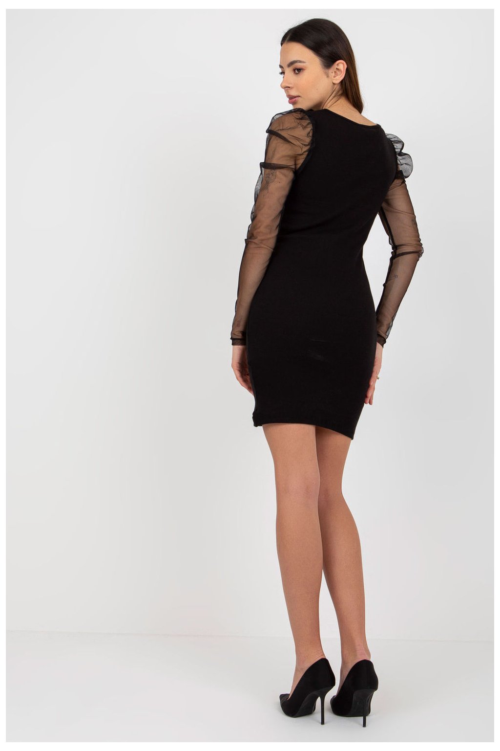 Šaty tužkového střihu s dlouhými průhlednými rukávy. Šaty z žebrovaného materiálu.