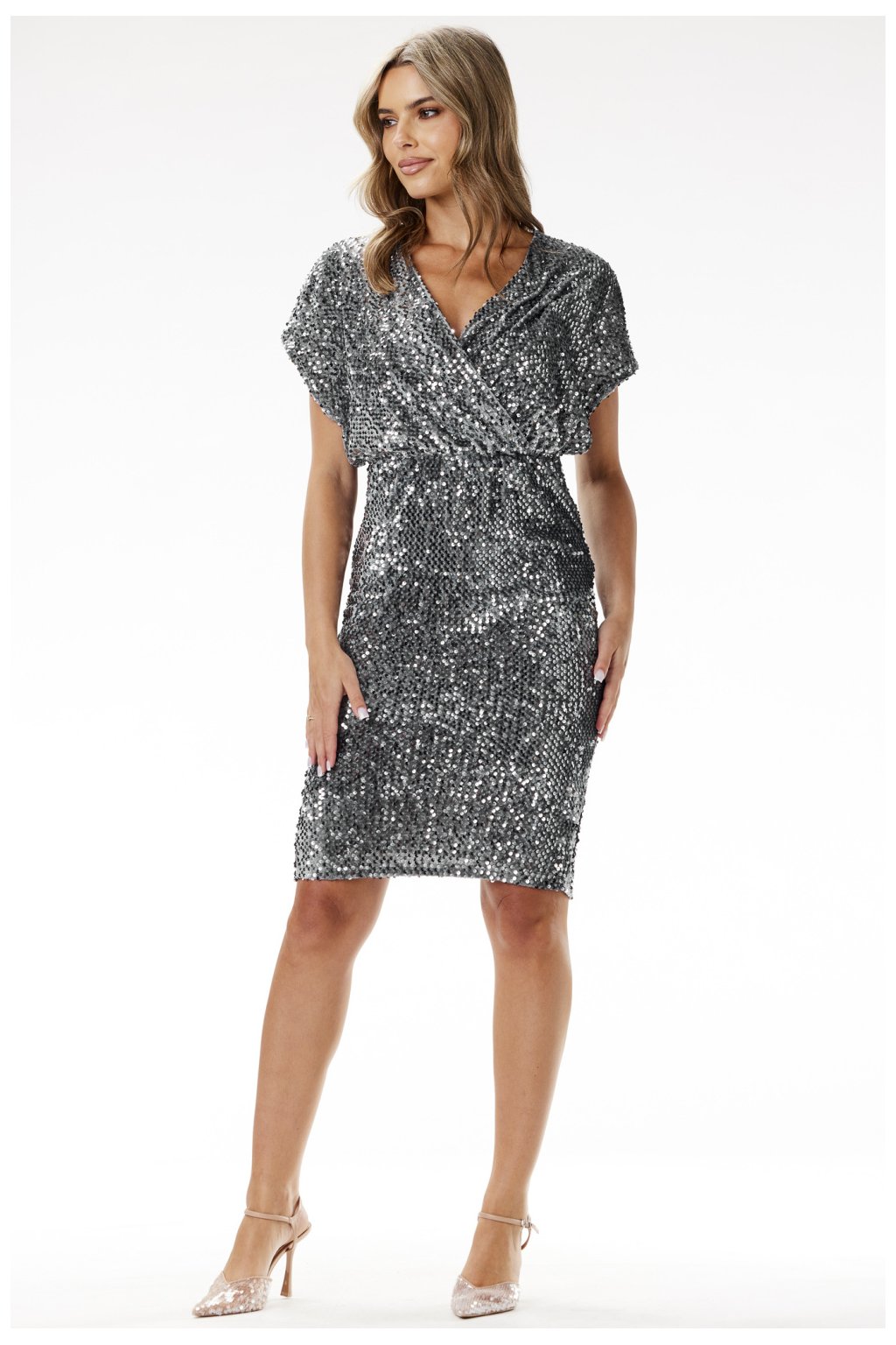 Kabátové šaty s flitrami midi na ramínkách. Očarující večerní šaty z flitrového sametu, které skvěle zdůrazňují postavu a dodávají eleganci. Ideální na speciální příležitosti, jako je Silvestr, Andrzejki nebo svátky. Přeložený výstřih zdůrazňuje poprsí, přidávající smyslnost. Přiléhavý střih zdůrazňuje pas, zajistí dokonalé přizpůsobení postavě. Flitrový samet krásně odráží světlo, přitahující pohledy. Skrytý zip zaručuje pohodlí nošení a elegantní vzhled. To jsou ideální večerní šaty, které vás nechají zazářit v každé situaci!