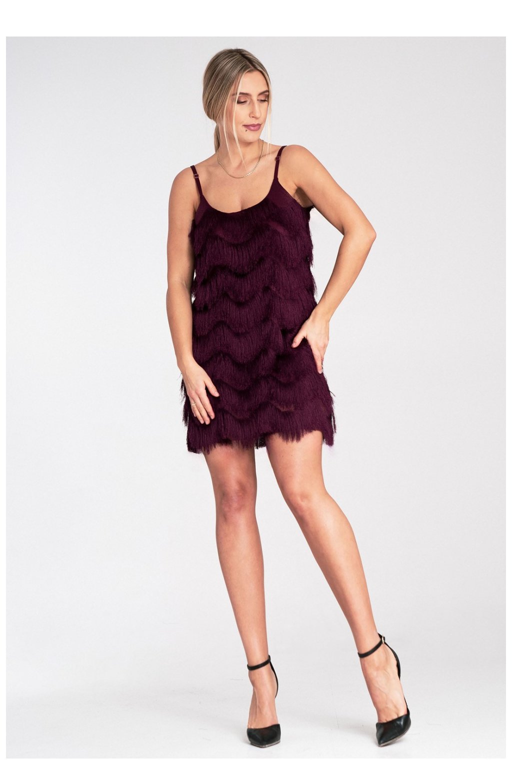 Maxi šaty s ozdobnými franžemi. Tenké, nastavitelné ramínka. Volný střih. Šaty s podšívkou.