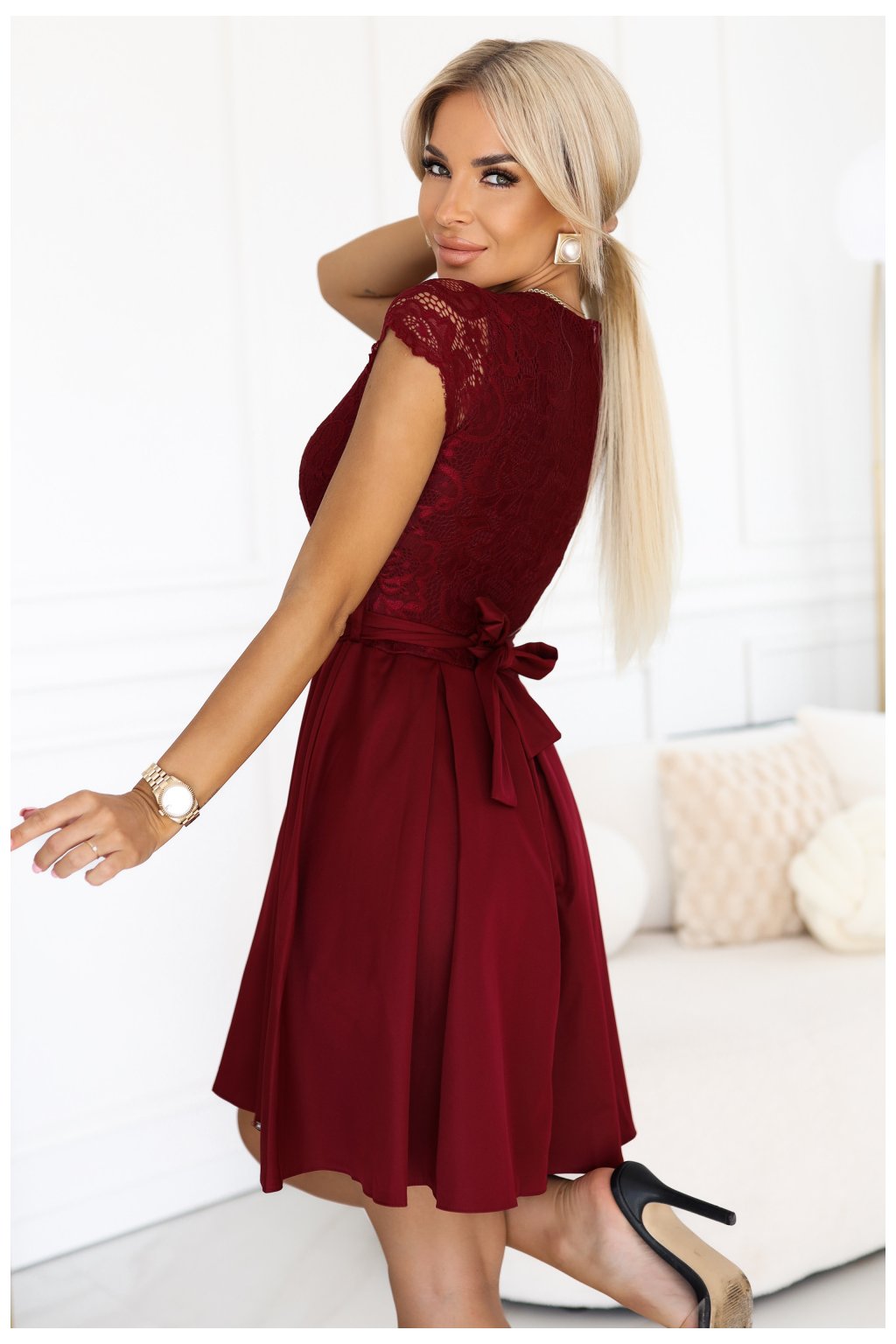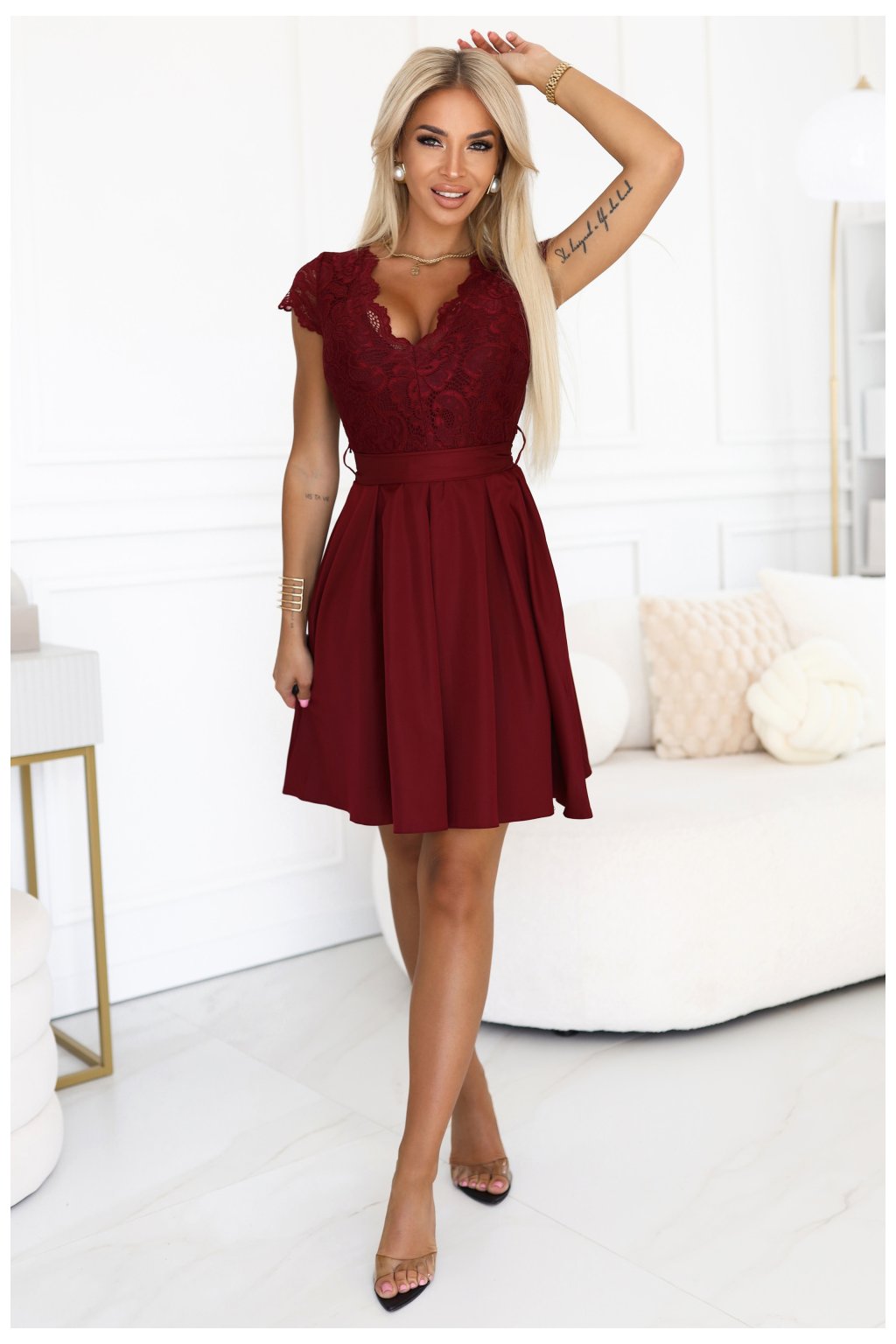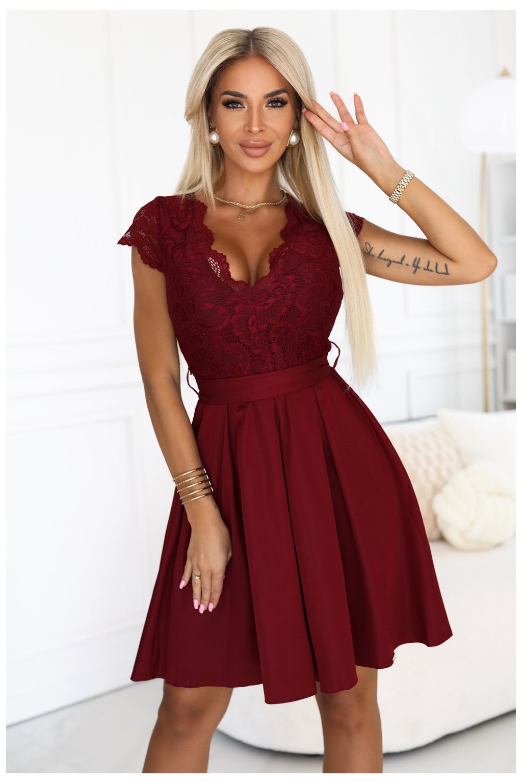 Šaty Anna jsou elegantním návrhem pro ženy, které ocení klasiku a moderní styl. Vrchní část z jemné krajky krásně zdůrazňuje výstřih, zatímco rozkvetlý spodek dodává postavě lehkost. Hluboká bordová barva přitahuje pozornost a hodí se na večírky, svatby a večerní vycházky.