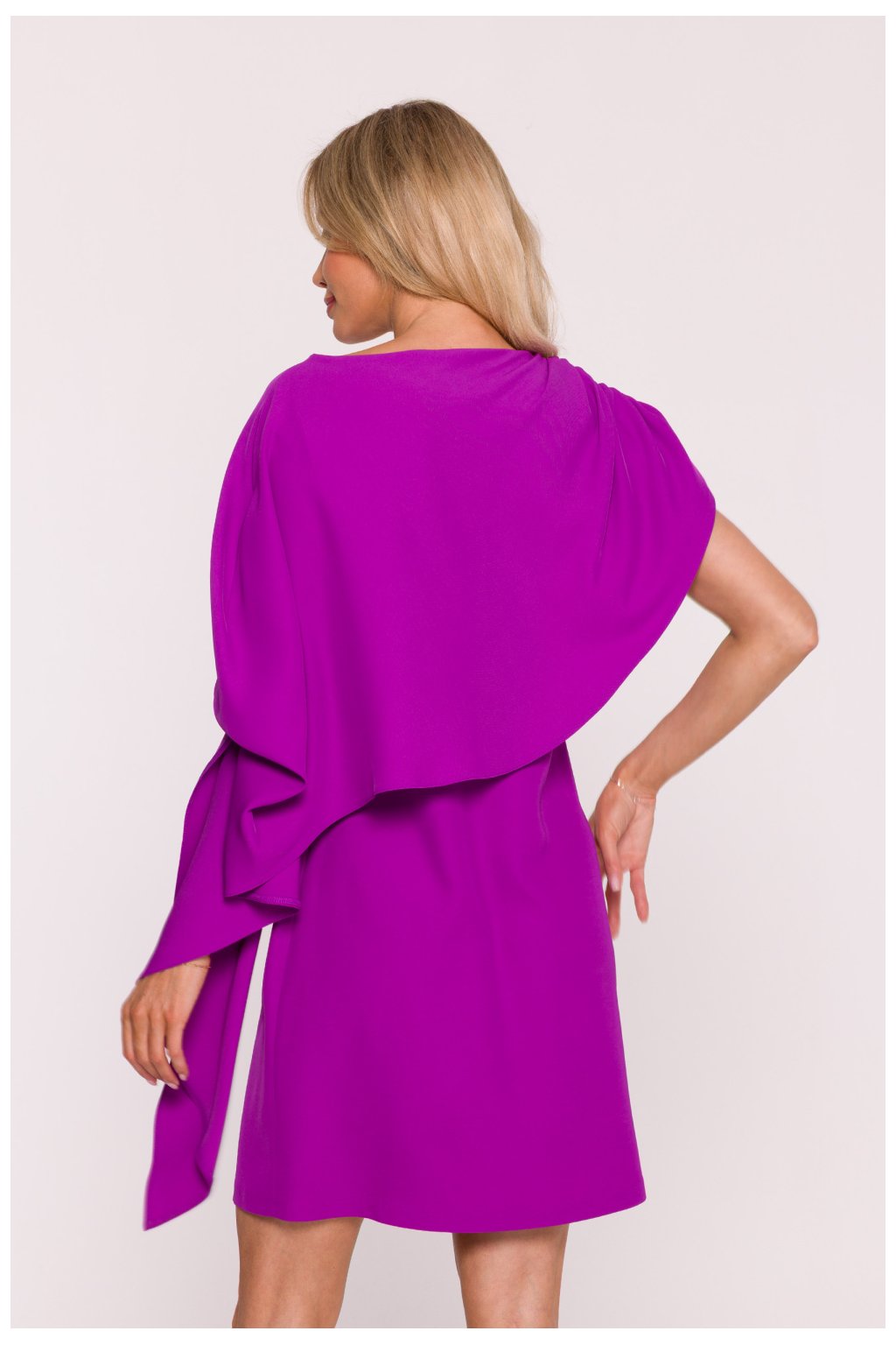 Elegantní koktejlové šaty s dekorativní pelerynou jsou výjimečným návrhem pro ženy, které ocení moderní formu a jemný lesk. Vyrobené z hladké látky s lehkým leskem, okouzlují svou jednoduchostí a efektními detaily. Model se vyznačuje kulatým výstřihem a asymetrickou, volně padající pelerynou, která vytváří stylové, smyslné rameno a dodává celku lehkost. Jednoduchý, lehce přizpůsobený spodek krásně zdůrazňuje postavu, zachovávaje přitom pohodlí nošení. Na boku je umístěn diskrétní, skrytý zip, který zajišťuje snadné oblékání a elegantní zakončení. Jemný lesk látky přidává kreaci eleganci, dělaje ji skvělou volbou pro večírky, slavnostní události nebo večerní vycházky. Navrženo a ušito v Polsku s důrazem na každý detail.