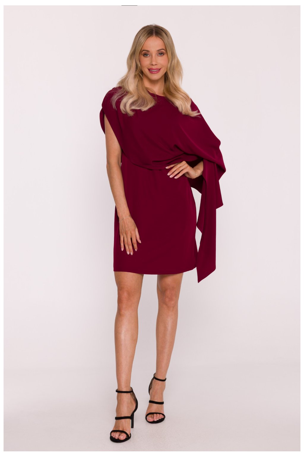 Elegantní koktejlové šaty s dekorativní pelíškem jsou výjimečným návrhem pro ženy, které oceňují moderní formu a decentní lesk. Vyrobené z hladké látky s lehkým leskem, okouzlují svou jednoduchostí a efektními detaily. Model vyniká kulatým výstřihem a asymetrickým, volně padajícím pelíškem, který vytváří stylové, smyslné rameno a dodává celku lehkost. Jednoduchý, lehce přizpůsobený spodek krásně zdůrazňuje postavu, zatímco zachovává pohodlí nošení. Na boku je diskrétně umístěný skrytý zip, který zajišťuje pohodlí při oblékání a elegantní dokončení. Decentní lesk látky přidává kreaci eleganci, což z ní dělá skvělou volbu pro večírky, slavnostní události nebo večerní vycházky. Navrženo a ušito v Polsku s důrazem na každý detail.