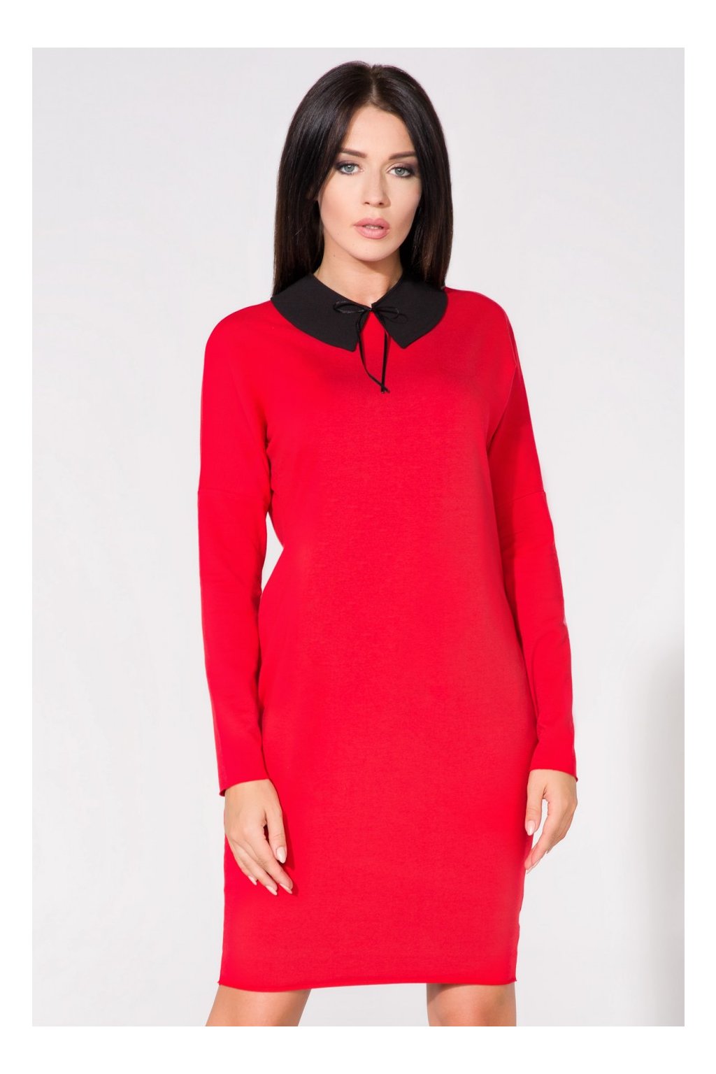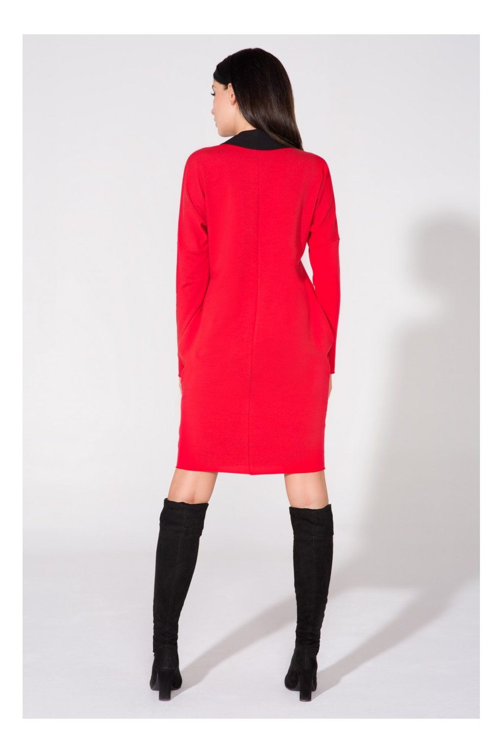 Šaty širokého střihu s kapsami na bocích. Spodní část, rukávy a výstřih zůstaly nezpracované. K šatům je připevněn límec, který dodává šik a eleganci.Složení látky: 70 % bavlna, 22 % polyester, 8 % elastan.