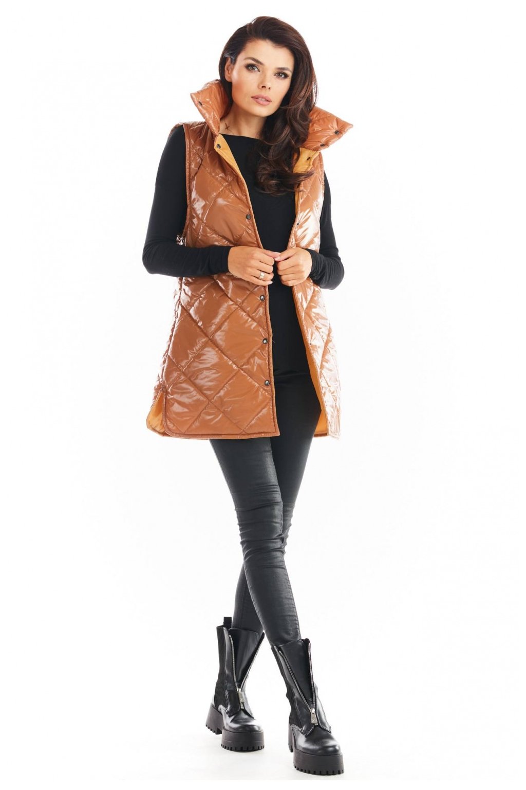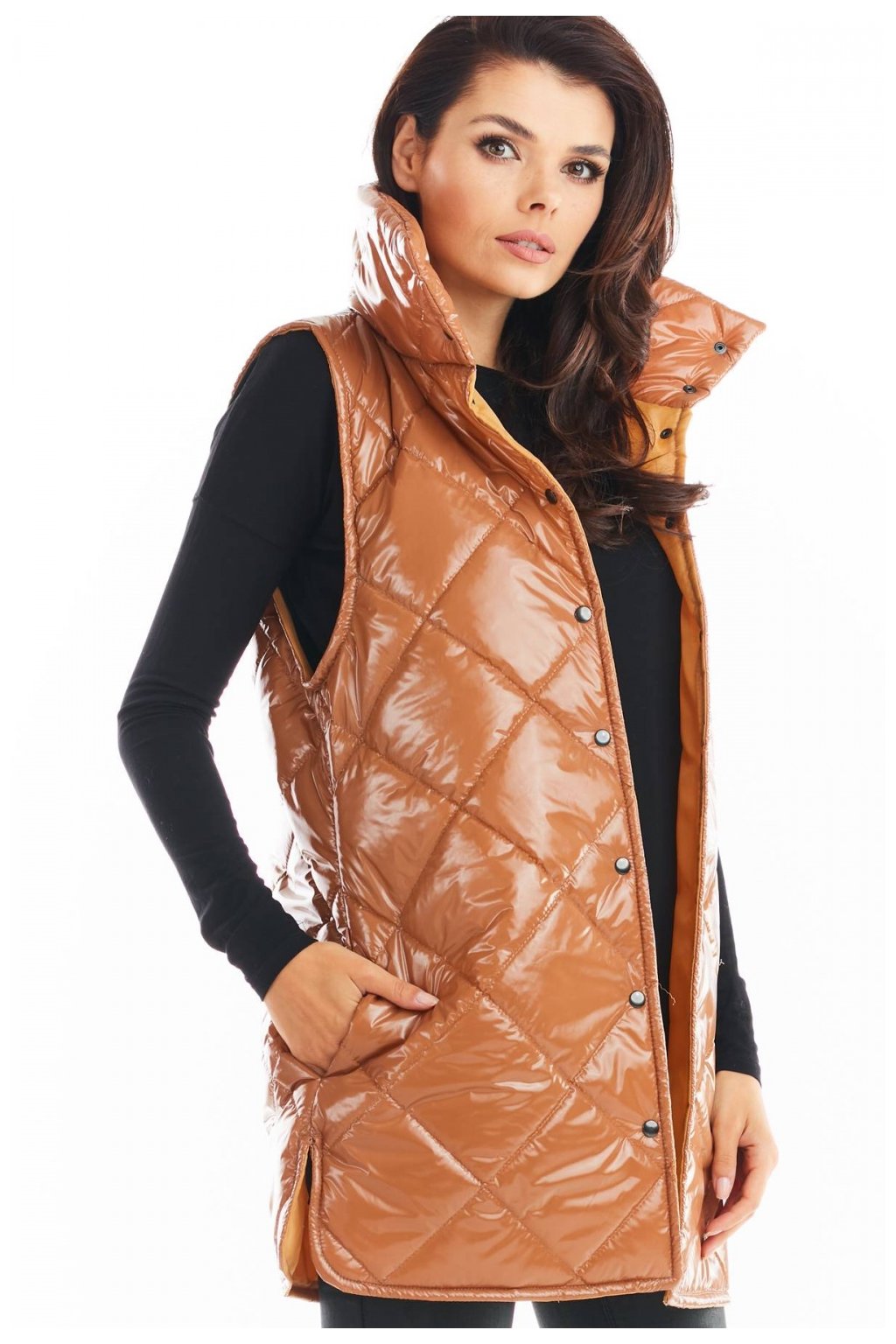 Prošívaná teplá vesta s vysokým límcem, zapínaná na knoflíky. Podzimní must have ve 4 barvách: béžové, černé, zelené a červené. Ideální pro oblečení v každém stylu. Materiál: podšívka 100% polyester..