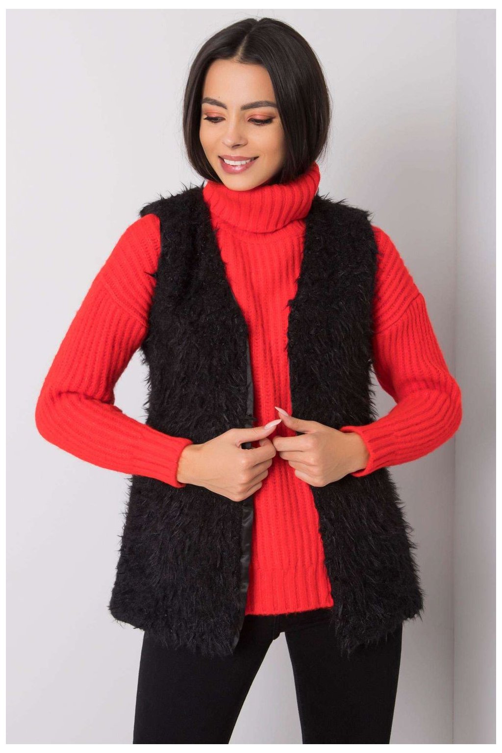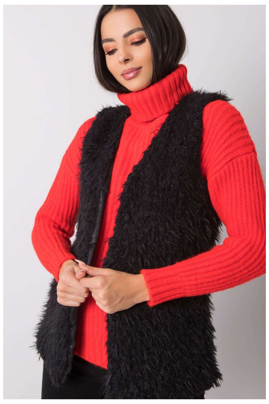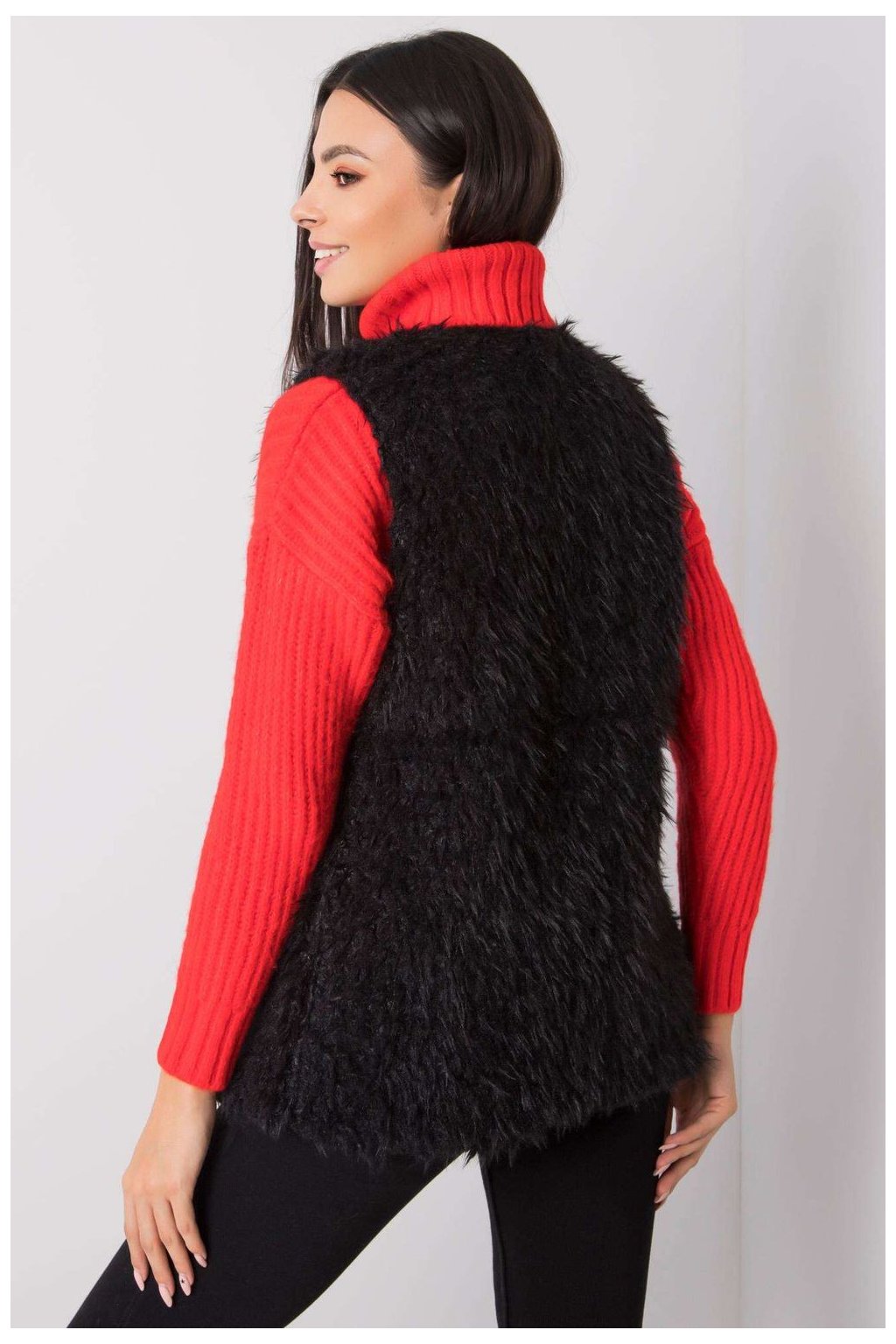 Černá kožešinová vesta se zapínáním na háčky a oka a podšívkou.