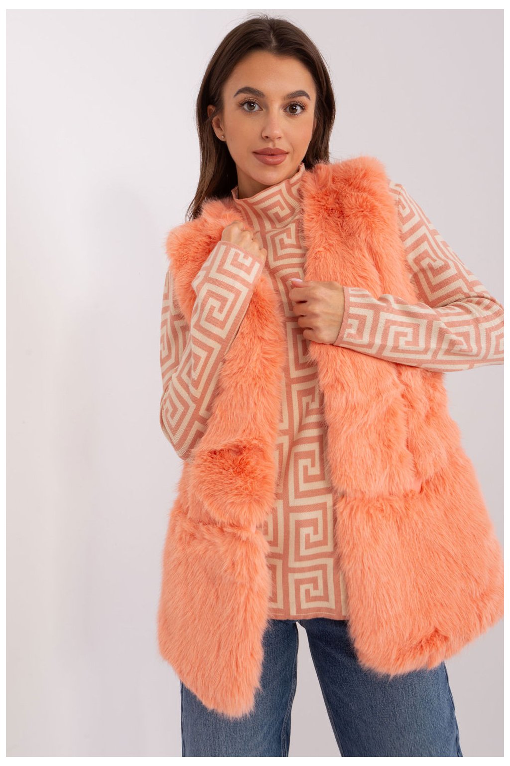 Tato kožešinová vesta je dokonalým doplňkem vašeho každodenního šatníku. Je vyrobena z měkkého polyesterového materiálu, je příjemná na dotek a pohodlná na nošení. Díky standardní délce se hodí k mnoha outfitům a umožňuje volný pohyb. Vesta má praktické kapsy, do kterých se vejdou drobnosti, jako jsou klíče nebo telefon. Díky vnitřní podšívce je tato vesta nejen stylová, ale také pohodlná. Poskytuje teplo v chladnějších dnech, takže je skvělou volbou pro podzim a začátek zimy. Je to dokonalý kousek ležérního šatníku, který dodá šmrnc vašim každodenním outfitům. Vesta nemá zapínání, takže se snadno obléká i svléká. Přidejte ji do své sbírky a dodejte svému každodennímu vzhledu jedinečný nádech.